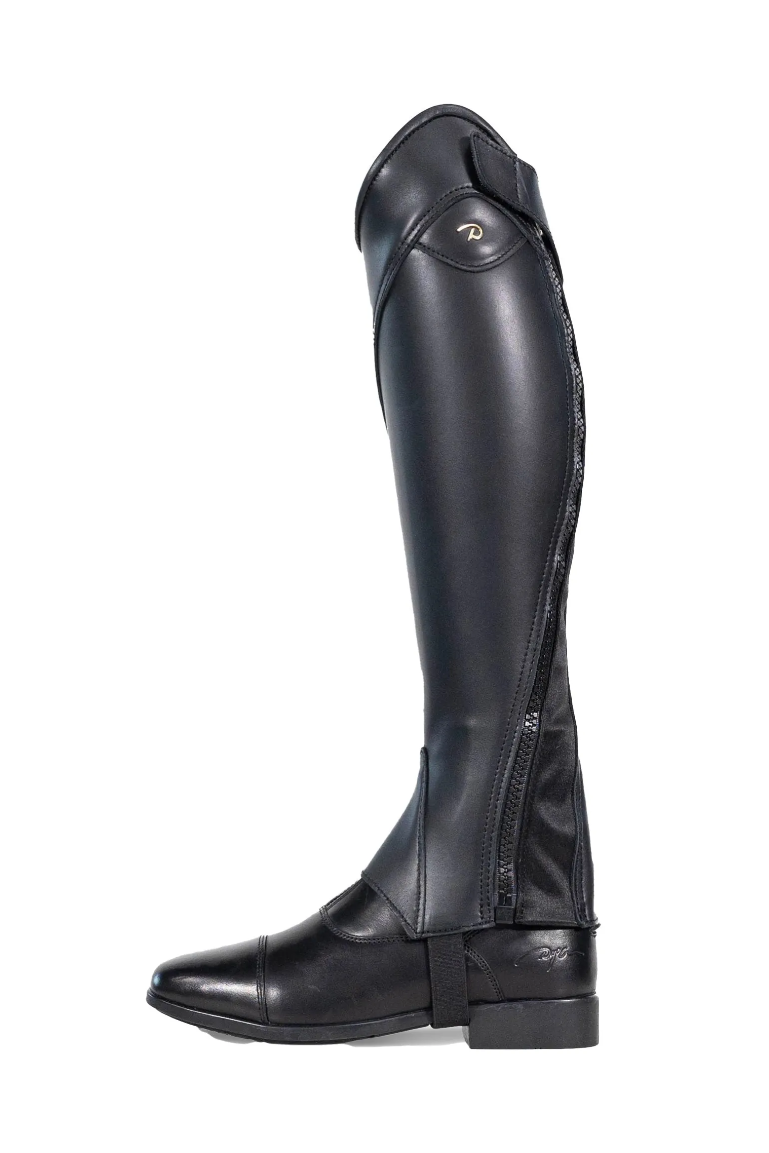 Erlebe Komfort und Langlebigkeit mit den Classic Comfort Chaps. Gefertigt aus glattem Kalbsleder, sind diese Chaps sorgfältig verarbeitet und auf dauerhafte Performance ausgelegt – ein unverzichtbarer Teil deiner Reitausrüstung für das tägliche Training. Der seitliche Reißverschluss mit Druckknopfverschluss garantiert einfaches und sicheres An- und Ausziehen. Elastikeinsätze unter dem Knie und am Fuß sorgen für eine bequeme, eng anliegende Passform und verbessern dein Reitgefühl. Die Schutzlasche über dem Reißverschluss ist mit YKK-Klettverschluss aus eingespritztem Kunststoff ausgestattet und unterstützt Stabilität und Kontrolle beim Reiten.