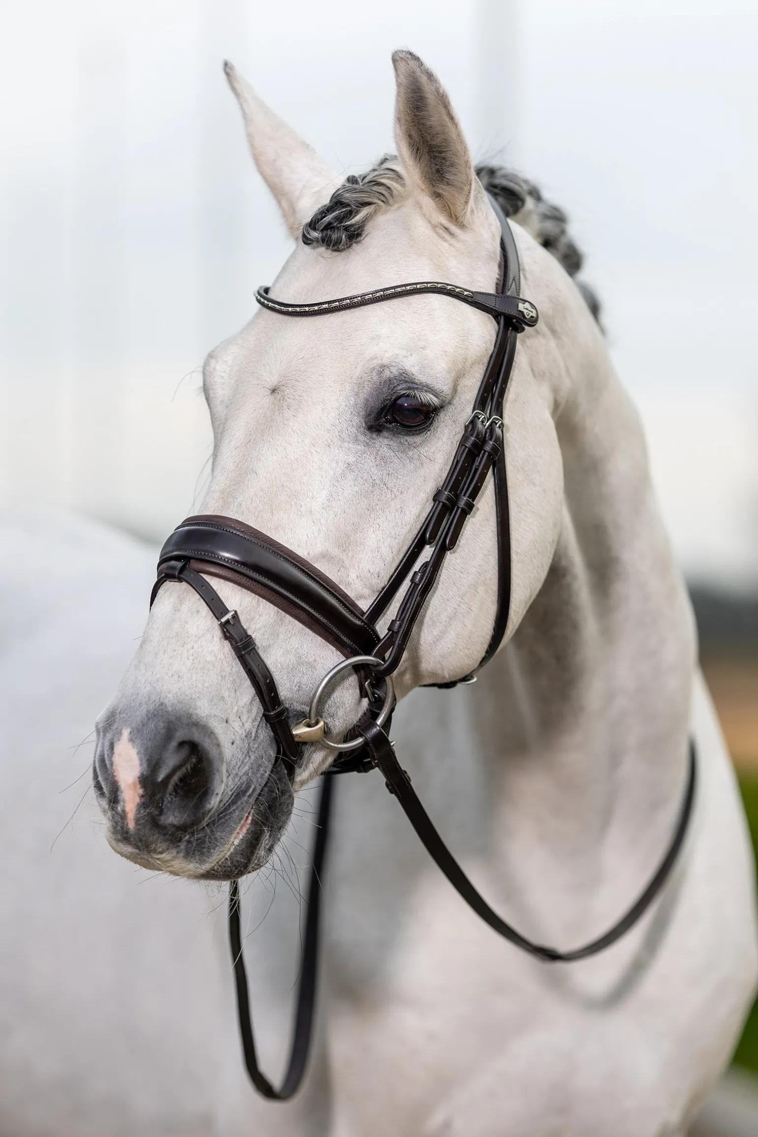 Der Dressurzaum von LeMieux ist ein klassisches Modell mit einem modernen Twist und wie geschaffen für das Viereck. Der zierliche, abnehmbare Stirnriemen ist anatomisch geformt und ergänzt das gepolsterte schwedische Reithalfter wunderbar.