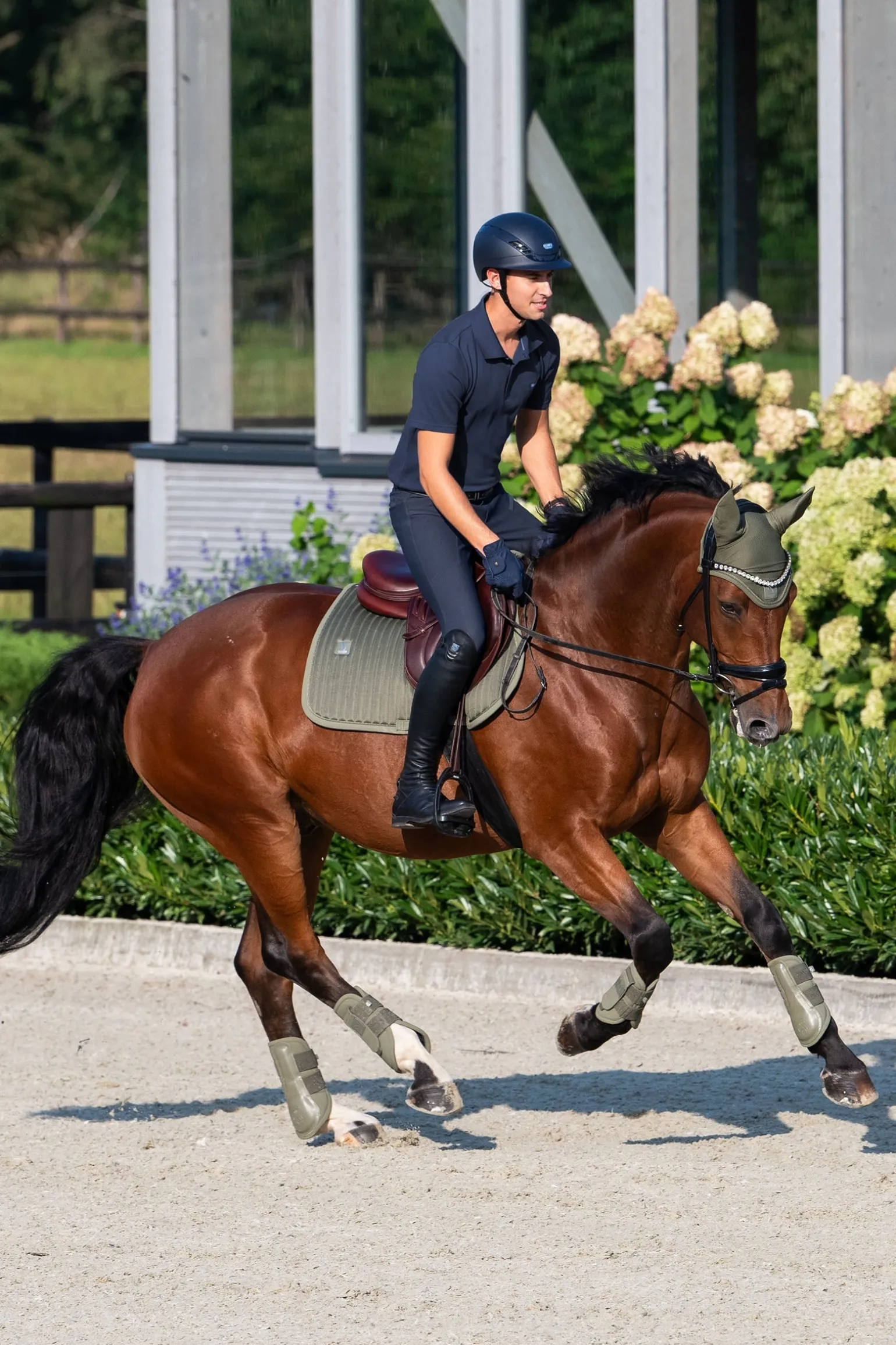 Die Eskadron Classic Sports SS25 DynAir Mesh Sport Fliegenhaube bietet optimalen Schutz und Komfort für dein Pferd. Hergestellt aus elastischem 4-Wege DynAir Mesh, ist sie extrem atmungsaktiv und sorgt für maximale Luftzirkulation. Die dezente Ton-in-Ton Kordel verleiht eine stilvolle Note, während das Classic Sports Emblem das elegante Design unterstreicht. Der Eskadron Schriftzug am Ohr rundet das Gesamtbild ab und macht diese Fliegenhaube zur perfekten Kombination aus Funktionalität und Ästhetik für den täglichen Einsatz beim Reiten.