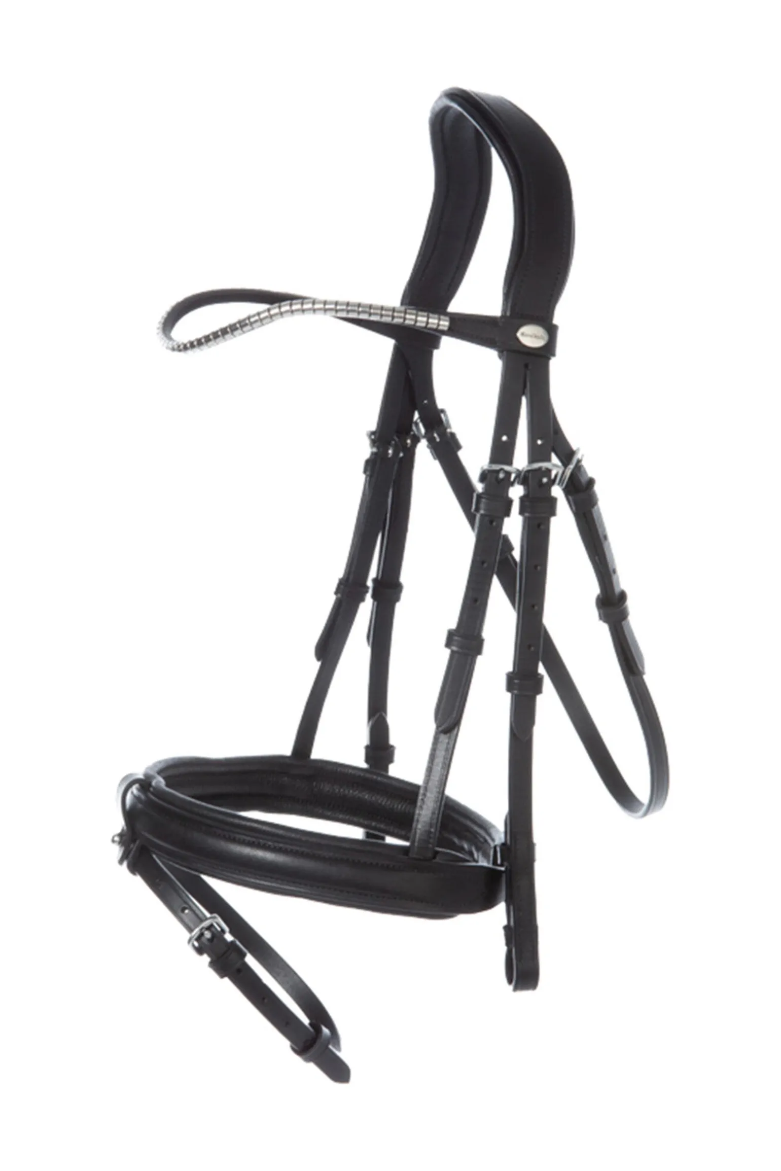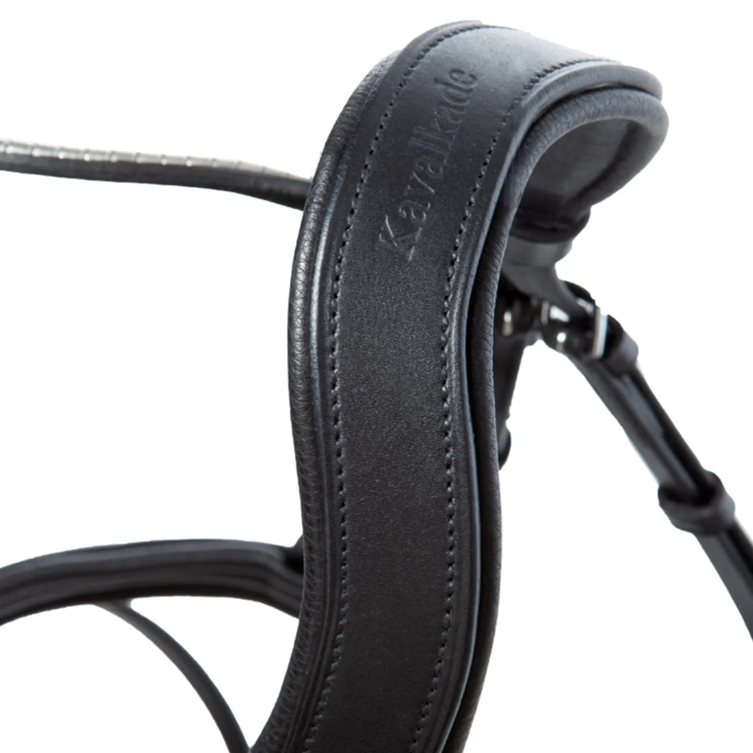 Die Trense von Kavalkade besteht aus einem englisch-kombiniertes Reithalfter mit einem weich unterlegten, anatomisch geformten Genickstück.