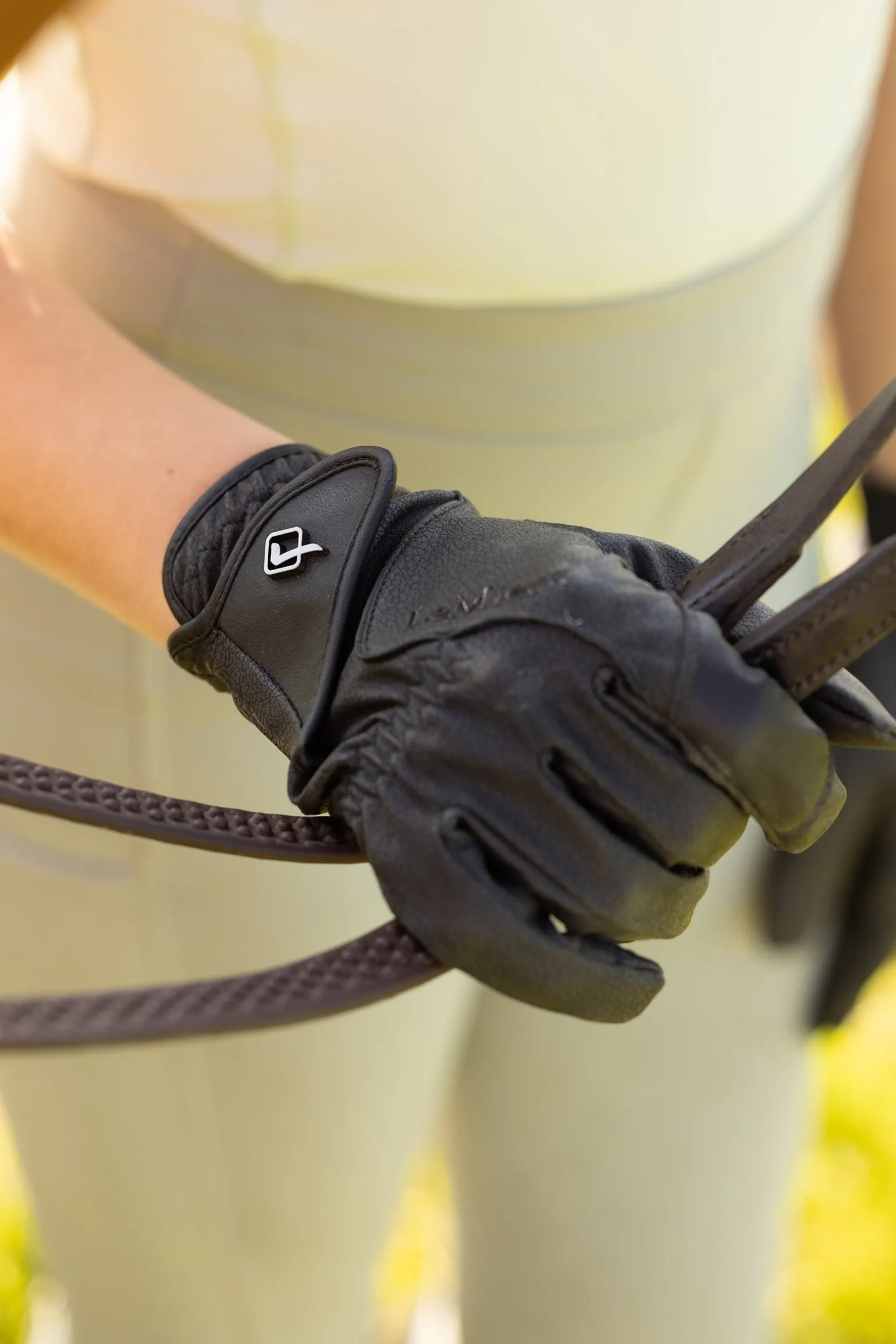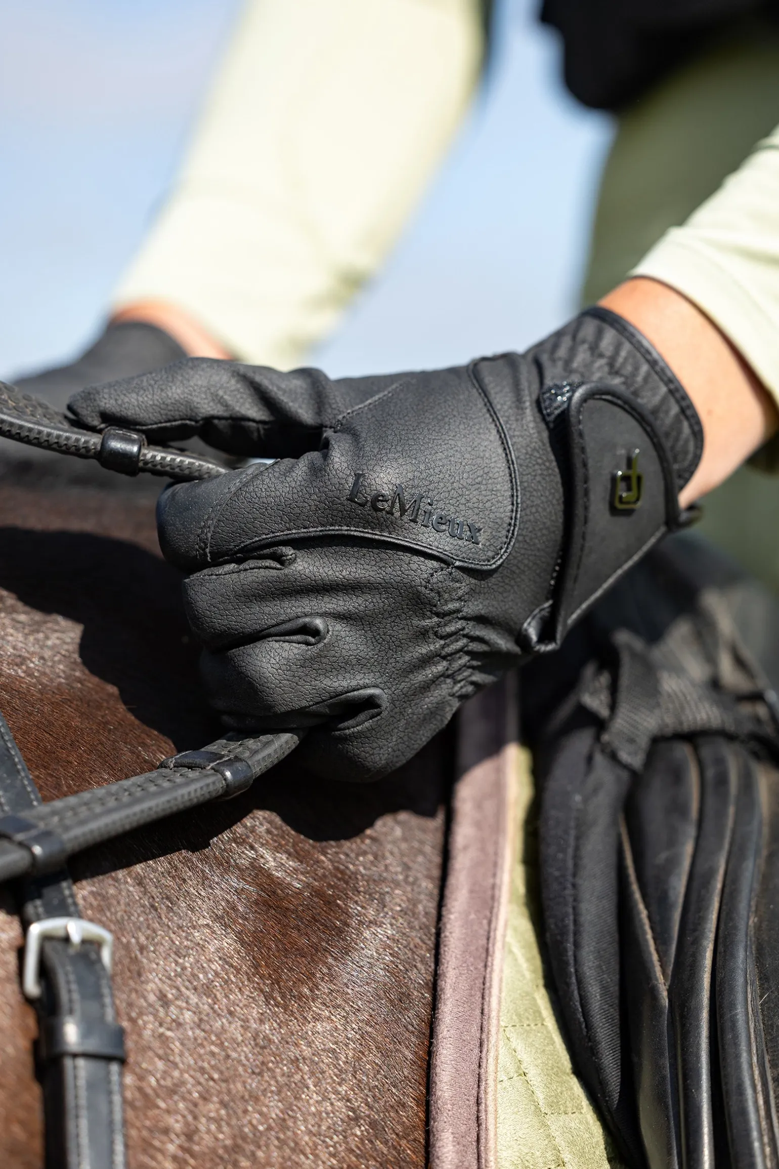 Aus einem neuen, innovativen Funktionsmaterial mit klassischer Optik gefertigt, bieten die Close Contact Reithandschuhe hohe Atmungsaktivität – für ein angenehm kühles und komfortables Tragegefühl an aktiven Reittagen. Ideal zum Reiten: Der doppelte Zügelgrip und die neue Nahtführung ermöglichen eine besonders feine Verbindung zum Pferdemaul. Ein sicherer Klettverschluss und das strukturierte LeMieux-Branding runden das Design stilvoll ab.
