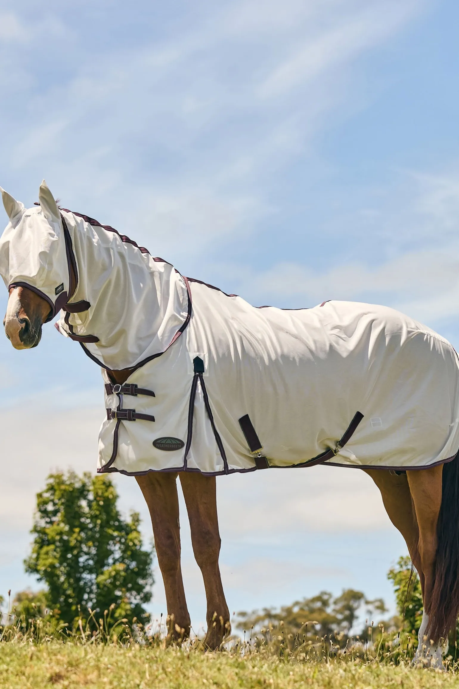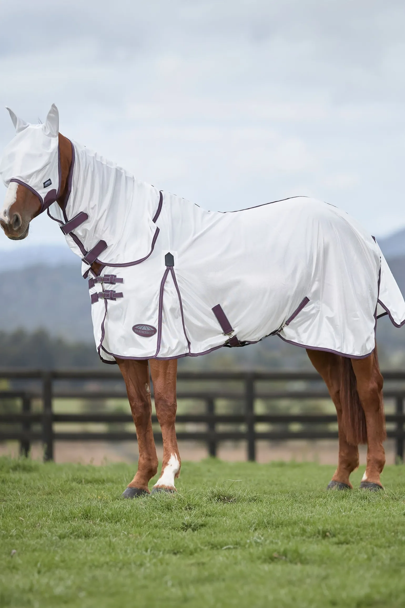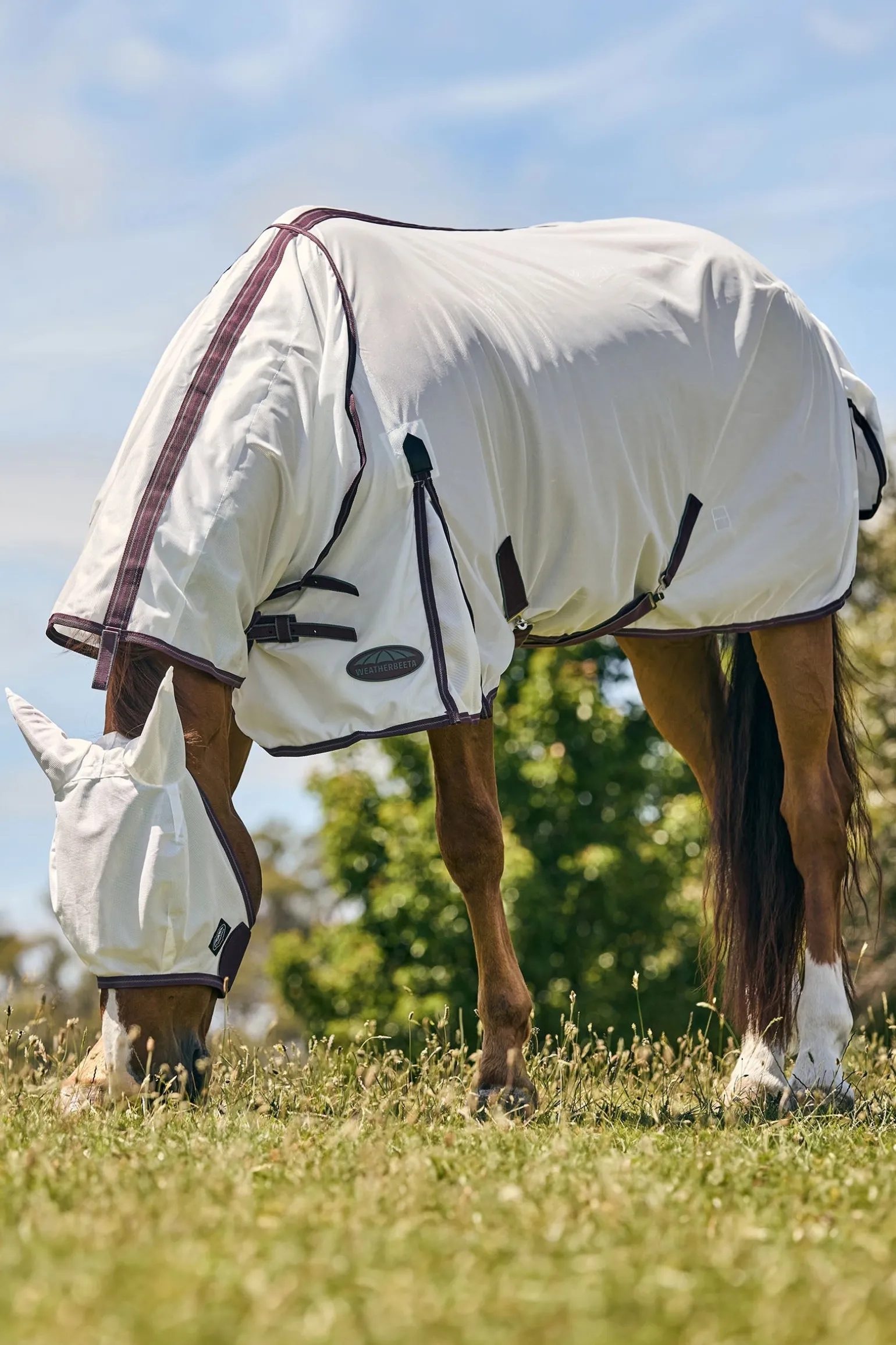 Schütze dein Pferd vor Fliegen und Sonnenlicht mit der WeatherBeeta ComFiTec Essential Mesh Mask. Diese Fliegenmaske für Pferde wurde entwickelt, um den Kopf, die Augen und die Ohren des Pferdes vor lästigen Fliegen und Insekten zu schützen und bietet außerdem einen UV-Schutz von über 75 %. Mit Abnähern über den Augen, um das feine Netz vom Gesicht abzuheben, und einem Airstream-Ohrdesign, das für zusätzlichen Luftstrom sorgt, um den Komfort zu erhalten. Die Fliegenmaske ist aus weichem Polyestergewebe gefertigt und lässt sich mit einem breiten, verstellbaren Klettverschluss unter dem Kiefer leicht bedienen.