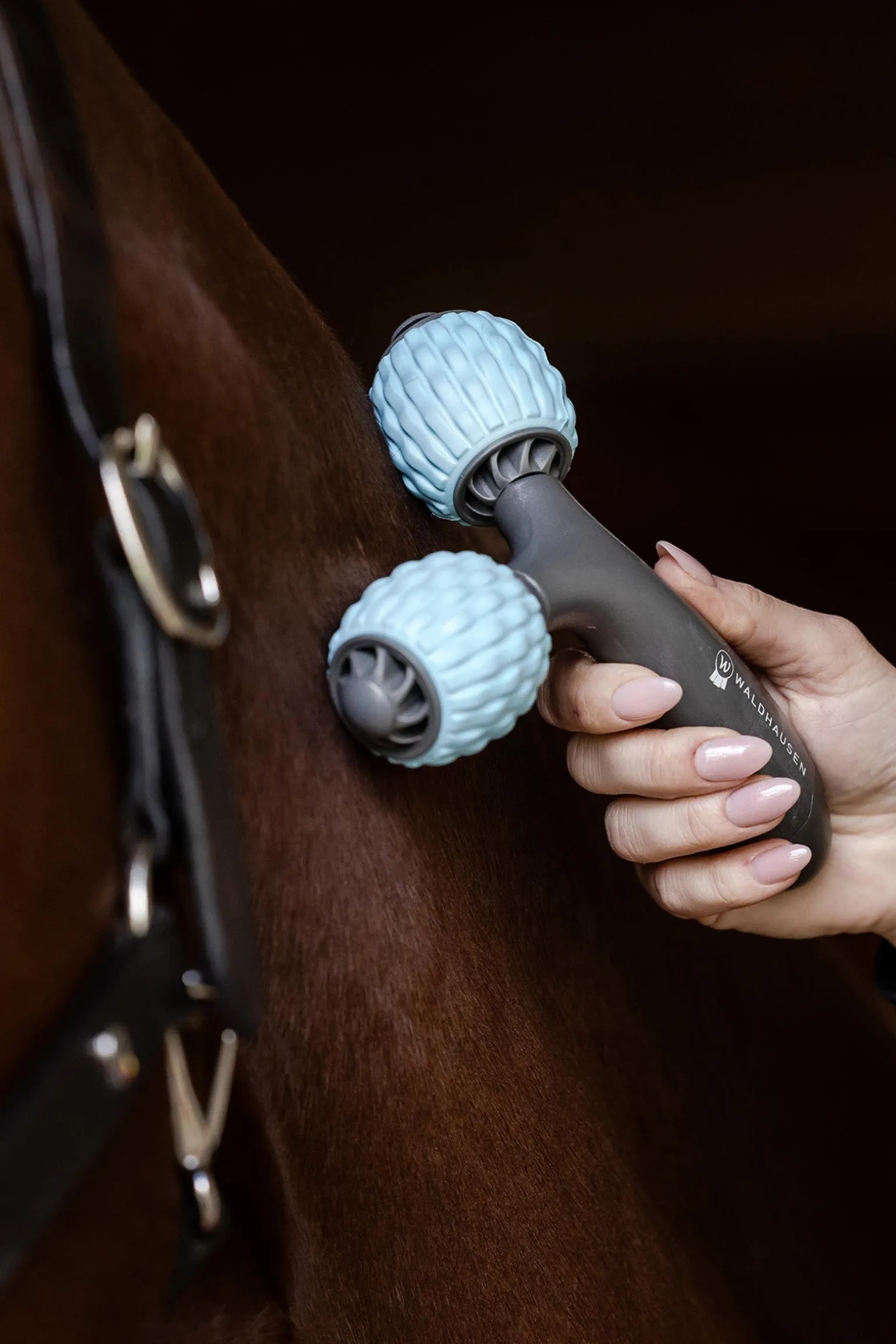 Die Waldhausen Health + Care Massageroller bieten eine einfache und effektive Möglichkeit, dem Pferd eine entspannende Massage zu schenken – ganz ohne Elektronik. Dank der speziellen Struktur der Rollen können gezielt Muskelpartien gelockert und Verspannungen gelindert werden. Der benutzerfreundliche Handgriff gewährleistet eine komfortable und sichere Anwendung, während die Massagerollen optimal für die weichen, großflächigen Körperbereiche des Pferdes geeignet sind. Insbesondere als Warm-up vor oder für die Regeneration nach intensiven Trainingseinheiten ist der Einsatz der Waldhausen Health + Care Massageroller eine wirksame Unterstützung zur Gesunderhaltung des Pferdes. Die Anwendung ist einfach, flexibel einsetzbar und ideal für eine beziehungsfördernde Zeit zwischen Pferd und Mensch.