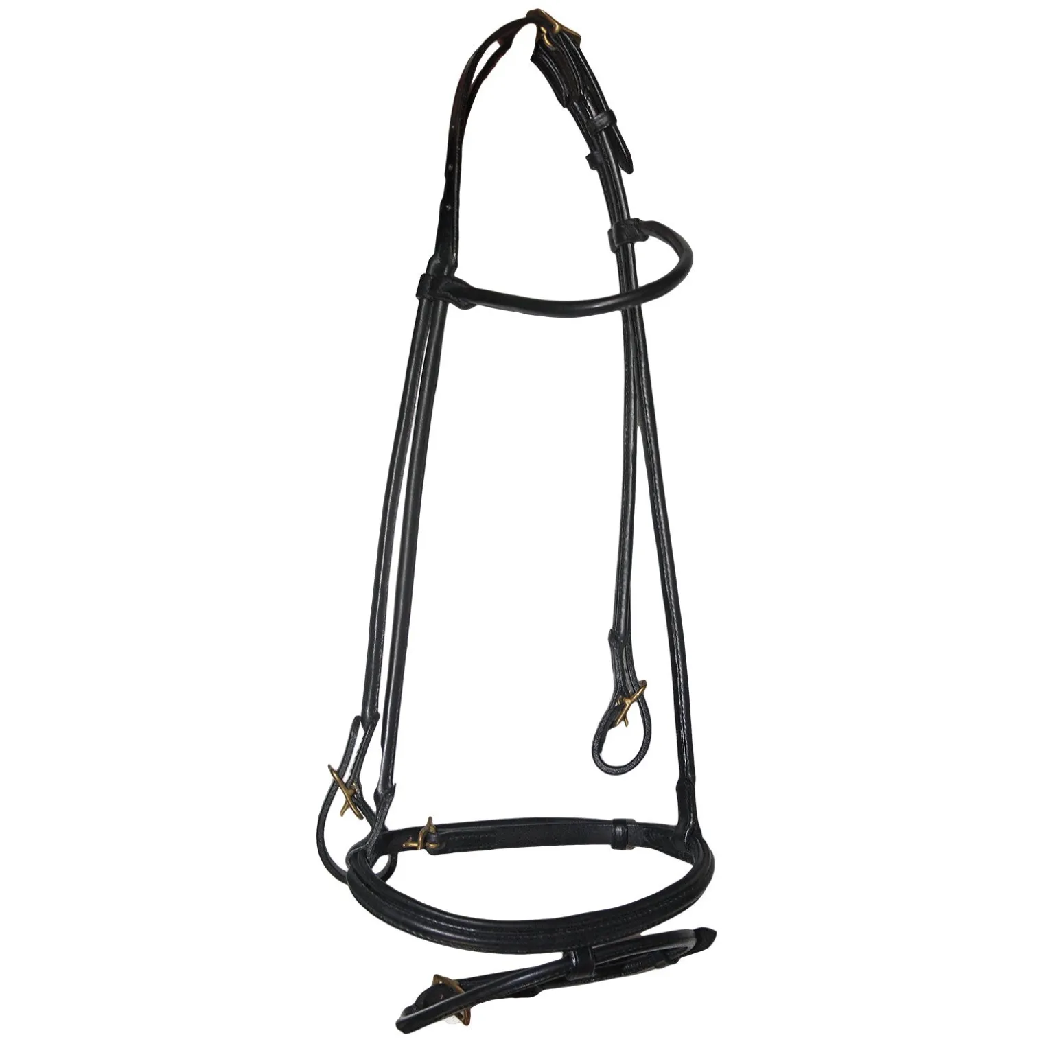 Eleganter, rundgenähter Zaum in sehr guter Qualität. Aus einem Stück hergestellt, sodass die Seitenteile parallel verlaufen.