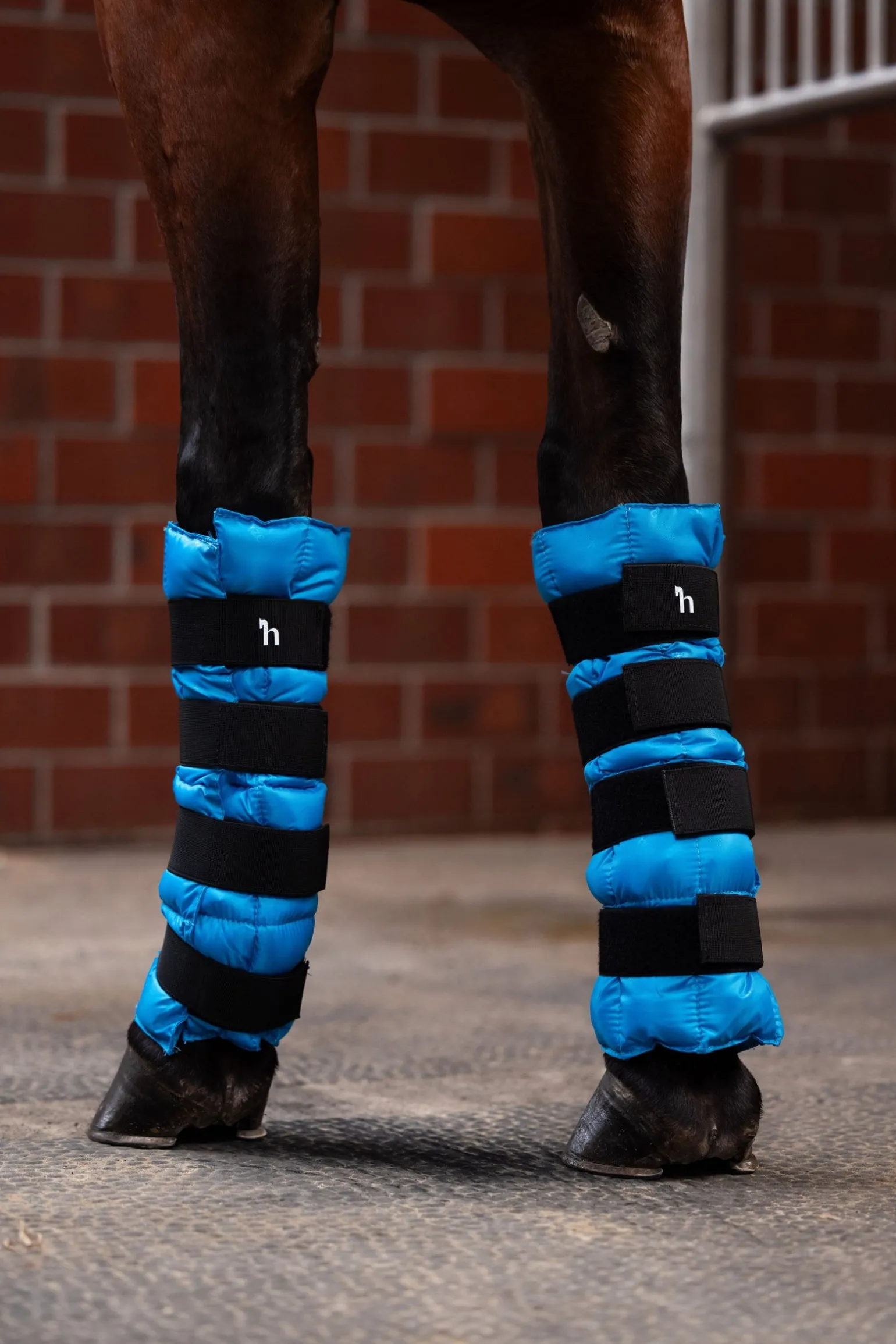 Die schnell kühlenden Gamaschen sind konzipiert worden, um den Beinen deines Pferdes nach dem Training Komfort zu bieten. Dies ist eine schnelle und einfache Lösung, um Schwellungen durch kühlende Therapie zu minimieren. Die Kühlgamaschen bleiben auch im kalten Zustand weich und lassen sich leicht um die Beine deines Pferdes wickeln. Durch vier schnell zu schließende Klettverschlüsse kannst du den Druck auf das Bein anpassen. Diese Gamaschen sind ideal für die Behandlung von arthritischen Gelenken, Weichgewebe, Sehnen und Bändern.