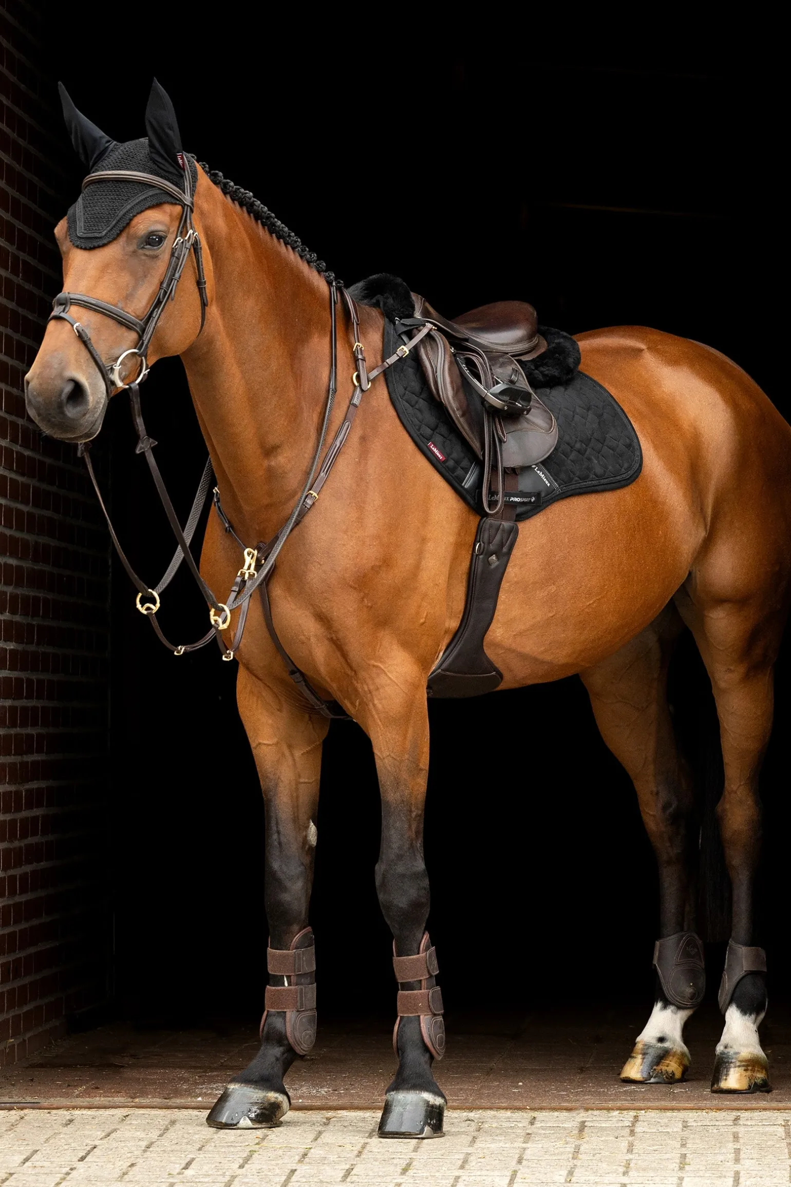 Die Crystal Suede Close Contact Schabracke von LeMieux hat eine luxuriös weiche Wildlederoberfläche und ein neues, raffiniertes Steppmuster, das deinem Sattel einen eleganten und professionellen Look verleiht. Für einen ganz besonderen Touch hat LeMieux diese Schabracke mit glitzernden und geflochtenen Details veredelt, die einen wunderschönen Look erzeugen, der auffällt.