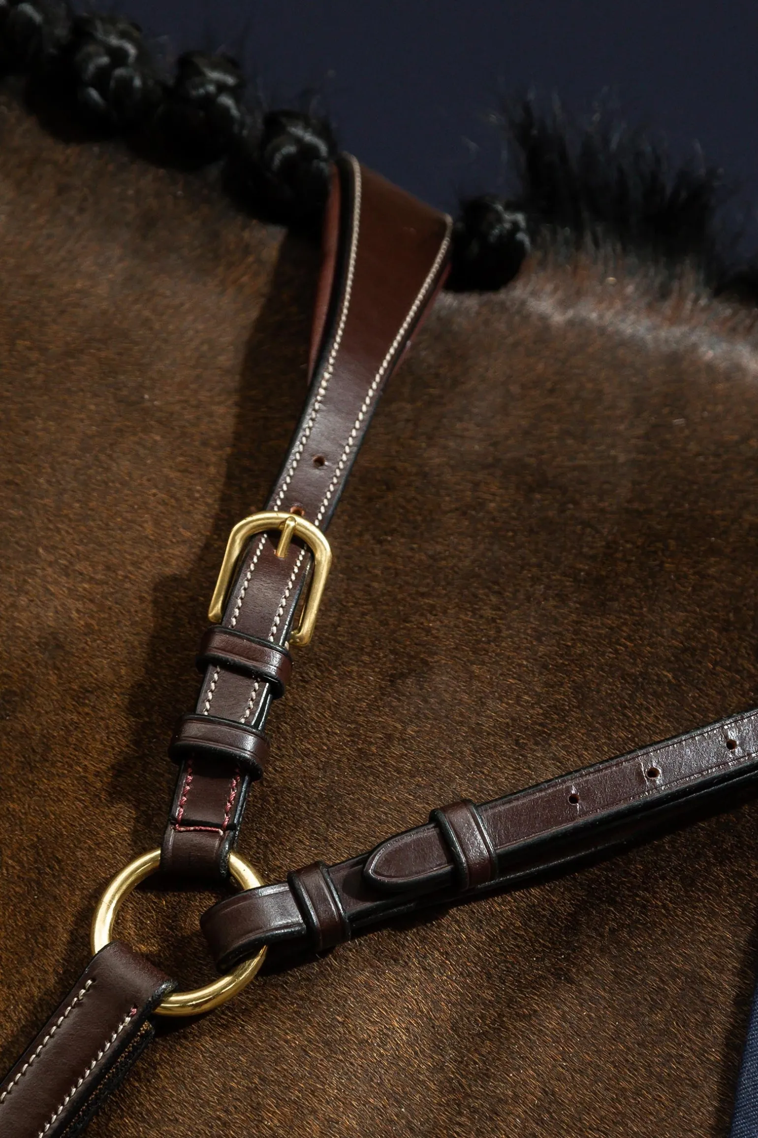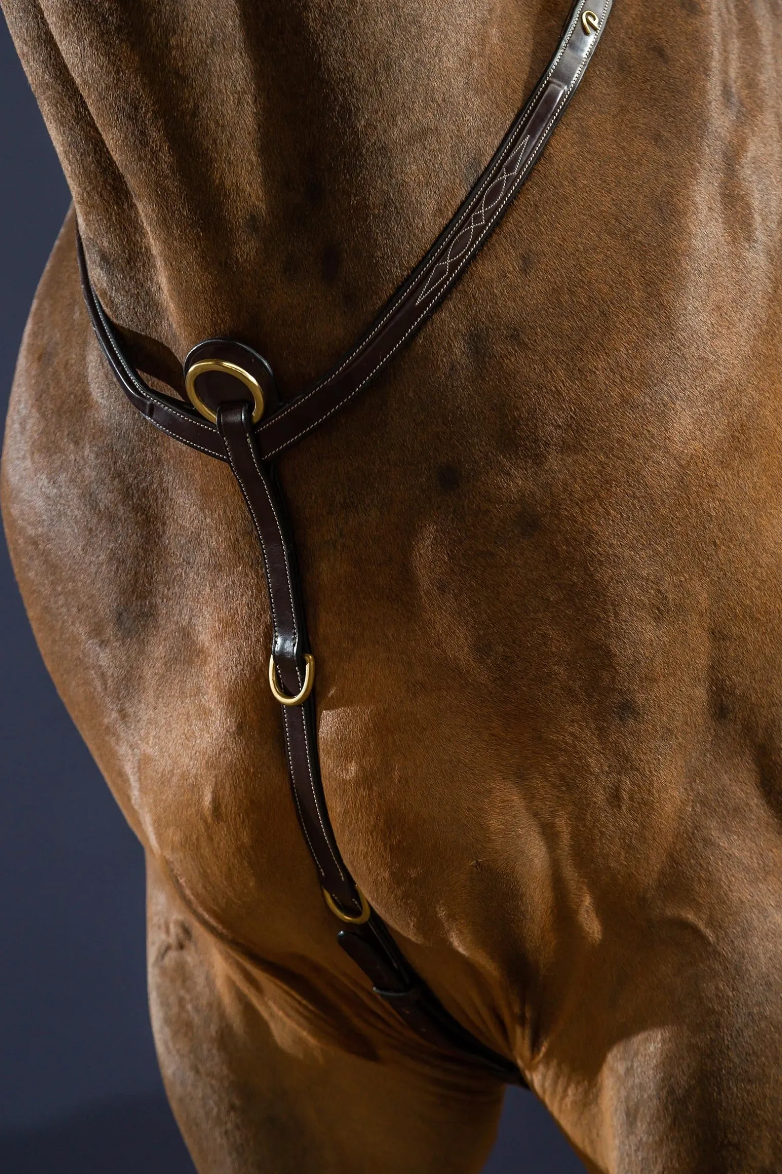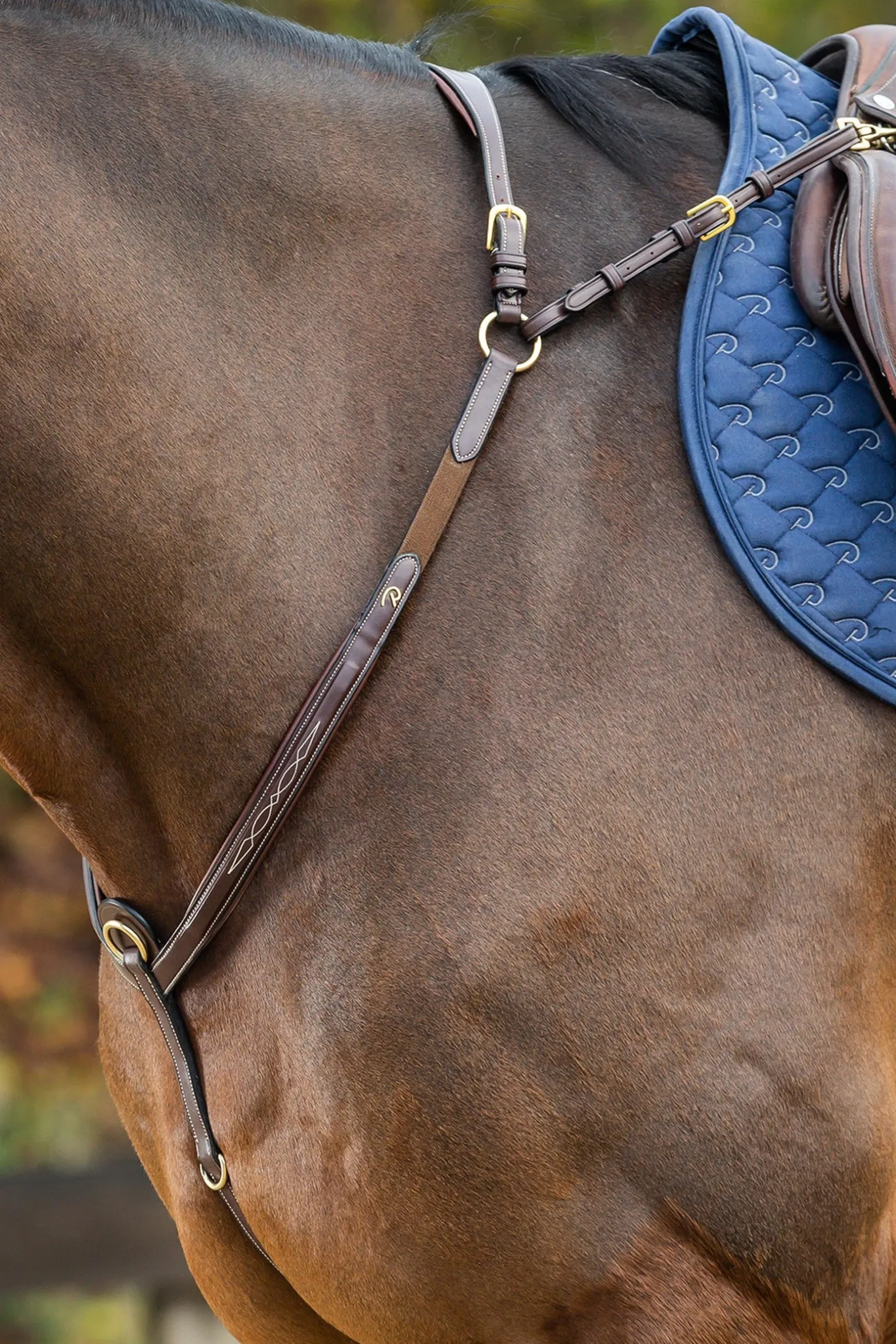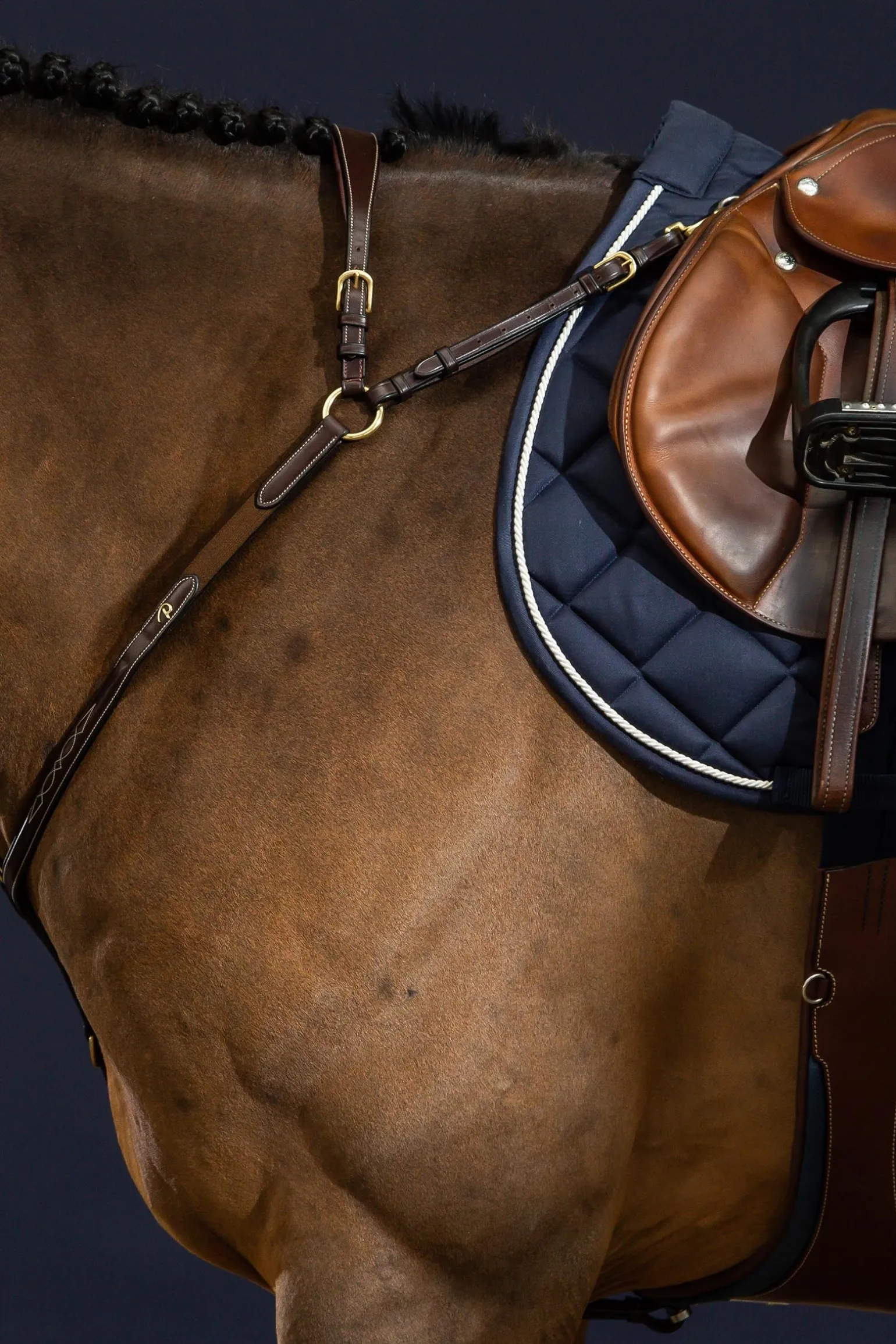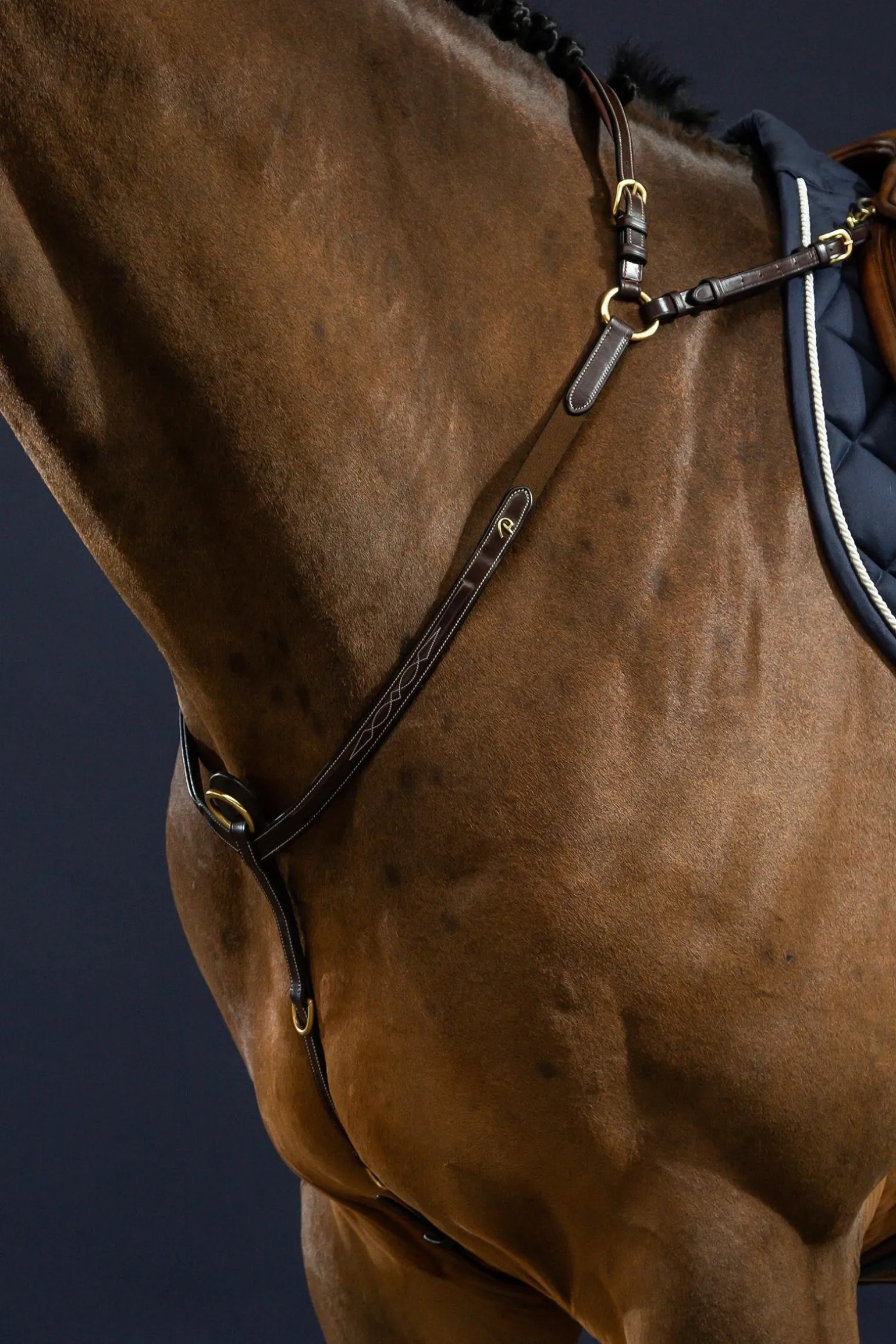 Dieses Vorderzeug bietet kompromisslose Stabilität und uneingeschränkte Bewegungsfreiheit. Jedes Detail wurde durchdacht: Der Hauptring dient als Befestigungspunkt für ein Martingal, während die zusätzlichen kleinen D-Ringe ideal zum Anbringen verschiedener Hilfszügel sind. Das Mittelstück verteilt den Druck gleichmäßig über die Schulterpartie und verhindert, dass das Vorderzeug nach unten rutscht – für eine stabile und elegante Lage während der gesamten Arbeit. Ideal für Springen, Vielseitigkeit oder das tägliche Training – perfekte Unterstützung, ohne die Lage des Sattels zu beeinträchtigen oder die Bewegungen des Pferdes einzuschränken. Besonders geeignet für Pferde mit schräger Schulter oder schmalem Rahmen, bei denen herkömmliche Modelle zum Absacken neigen.