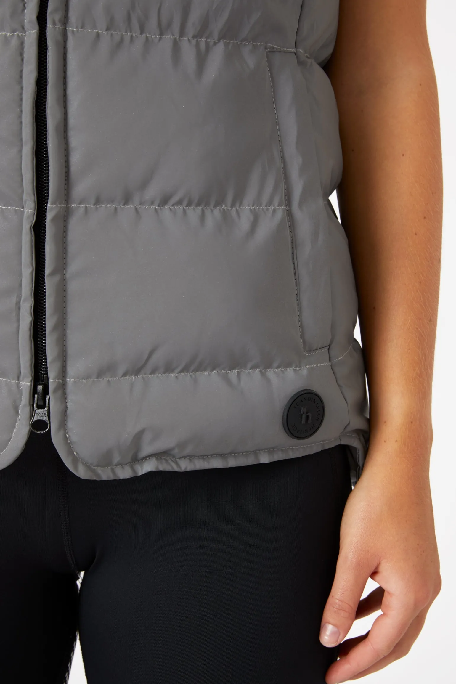 Diese gefütterte Weste ist super funktionell und bequem. Reflektierende Eigenschaften sorgen für Sichtbarkeit bei abendlichen Ausritten oder bei trübem Wetter. Das wasserabweisende, winddichte Material hält dich warm und trocken. Die Kapuze ist abnehmbar. Zwei Reißverschlusstaschen bieten Platz für Telefon, Schlüssel und Leckerli.