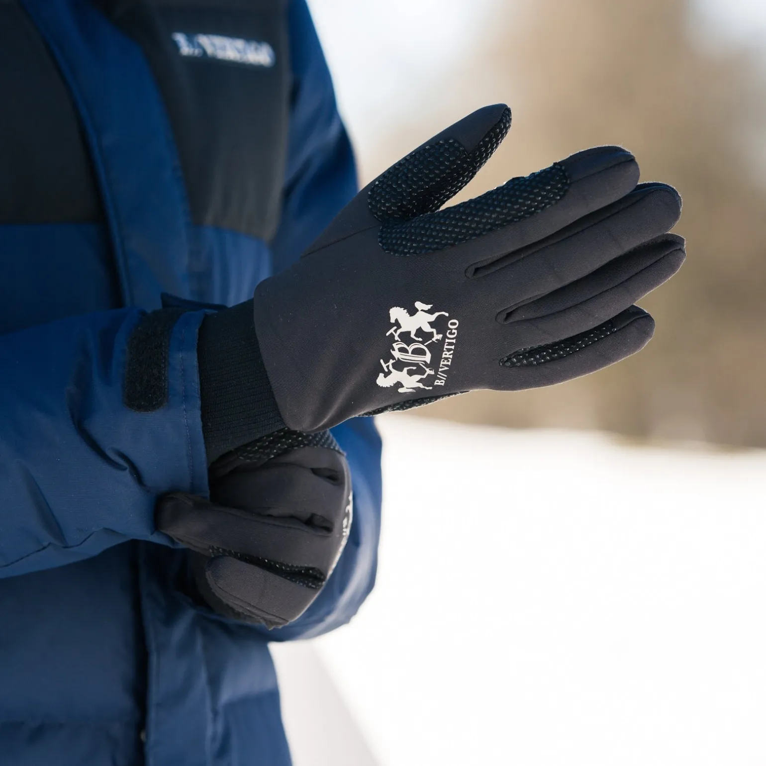Ritte bei kaltem Wetter werden mit diesen Thermo Reithandschuhen viel besser. Das winddichte Gewebe ist warm, weich und wetterresistent für optimales Reiten im Winter. Der dehnbare Bereich zwischen den Fingern ist bequem und ermöglicht die, die Zügel gut greifen zu können. Das elegante B Vertigo Logo sieht toll aus und reflektiert zudem für mehr Sicherheit.
