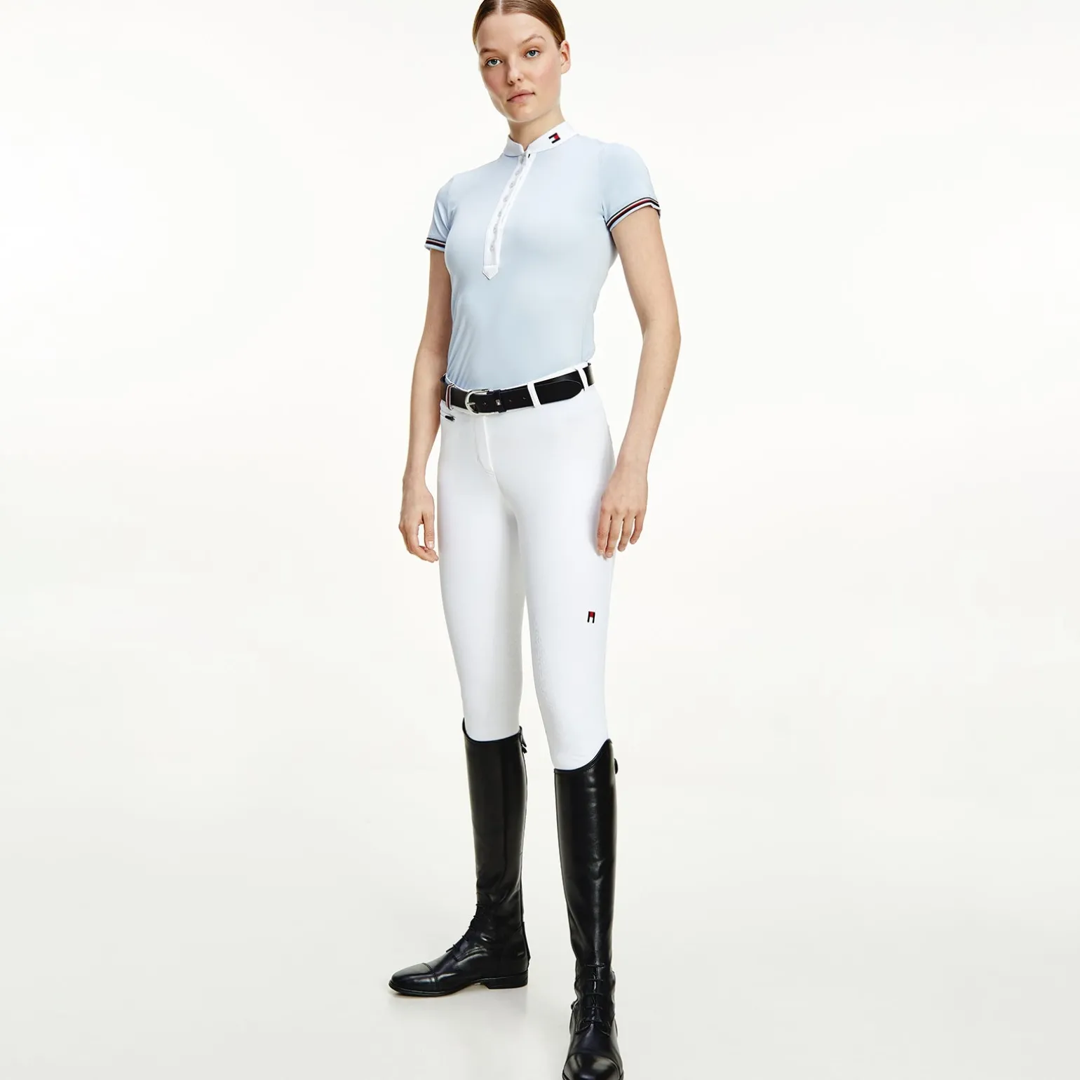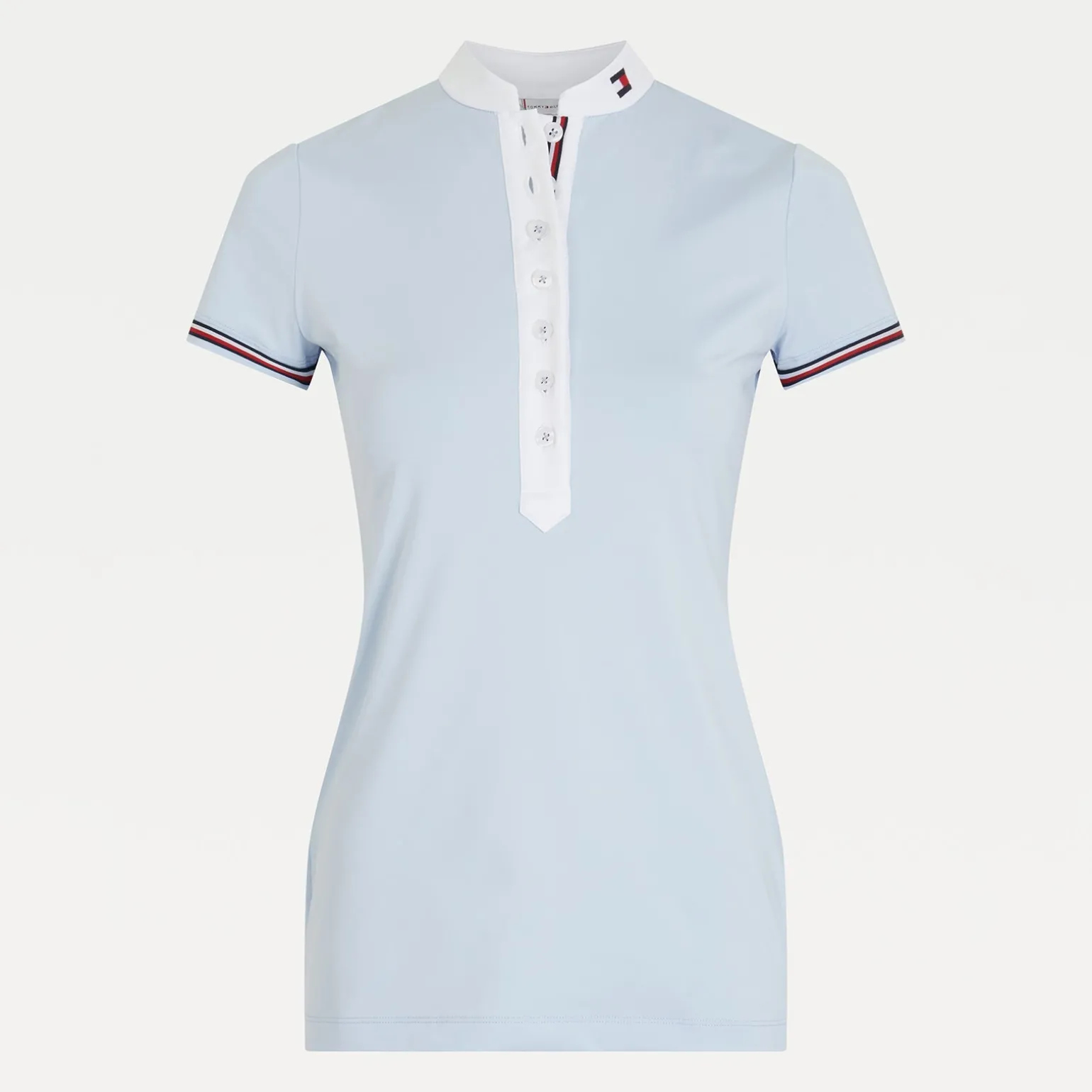 Klassisches, figurnah geschnittenes Kurzarm-Turnier-Shirt mit langer Knopfleiste und weissem Mao-Kragen. Gesticktes Logo auf der vorderen linken Kragenseite, TH Global Streifenband hinten in der Mitte, sowie verdeckt unter der Knopfleiste.