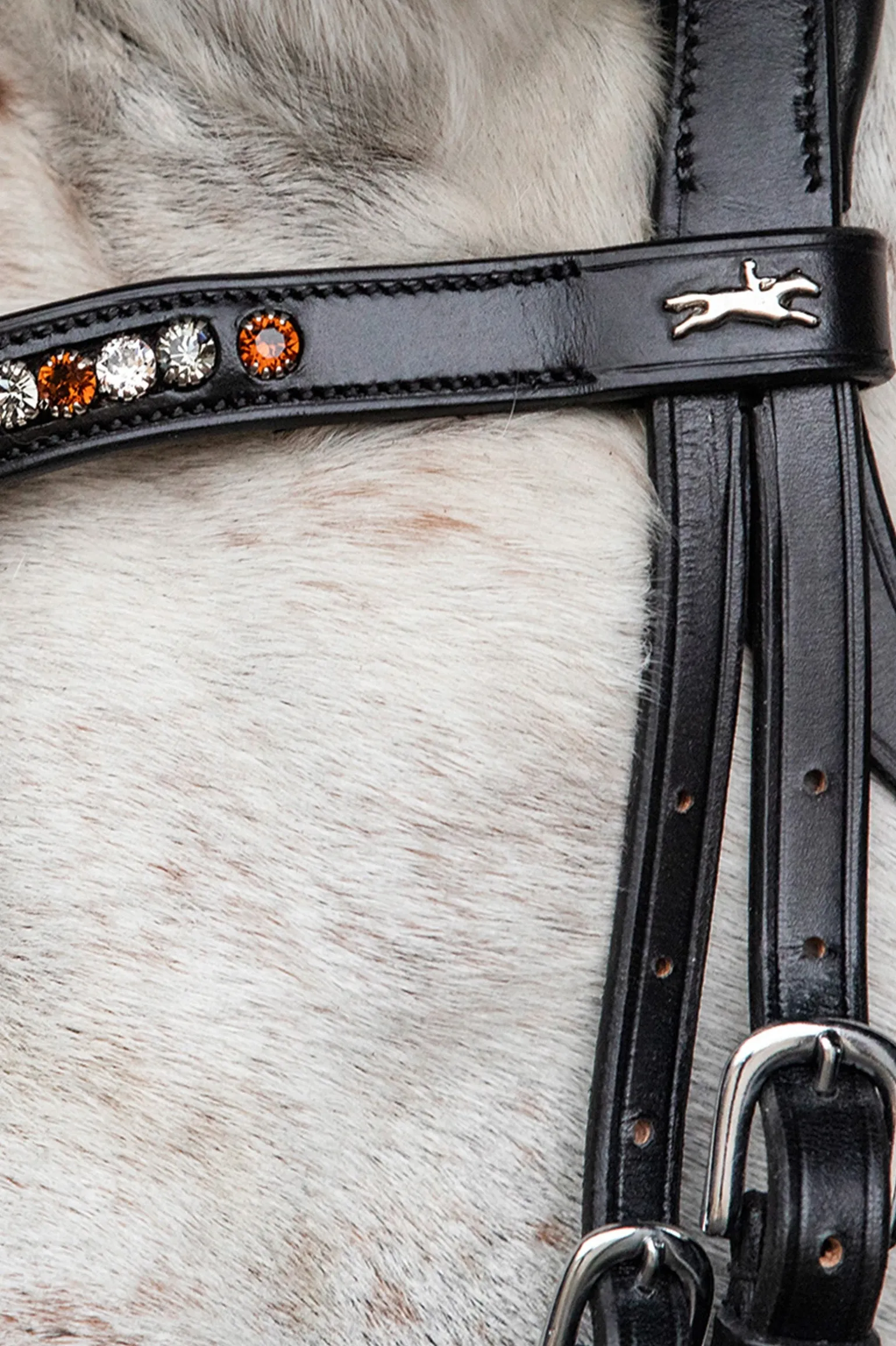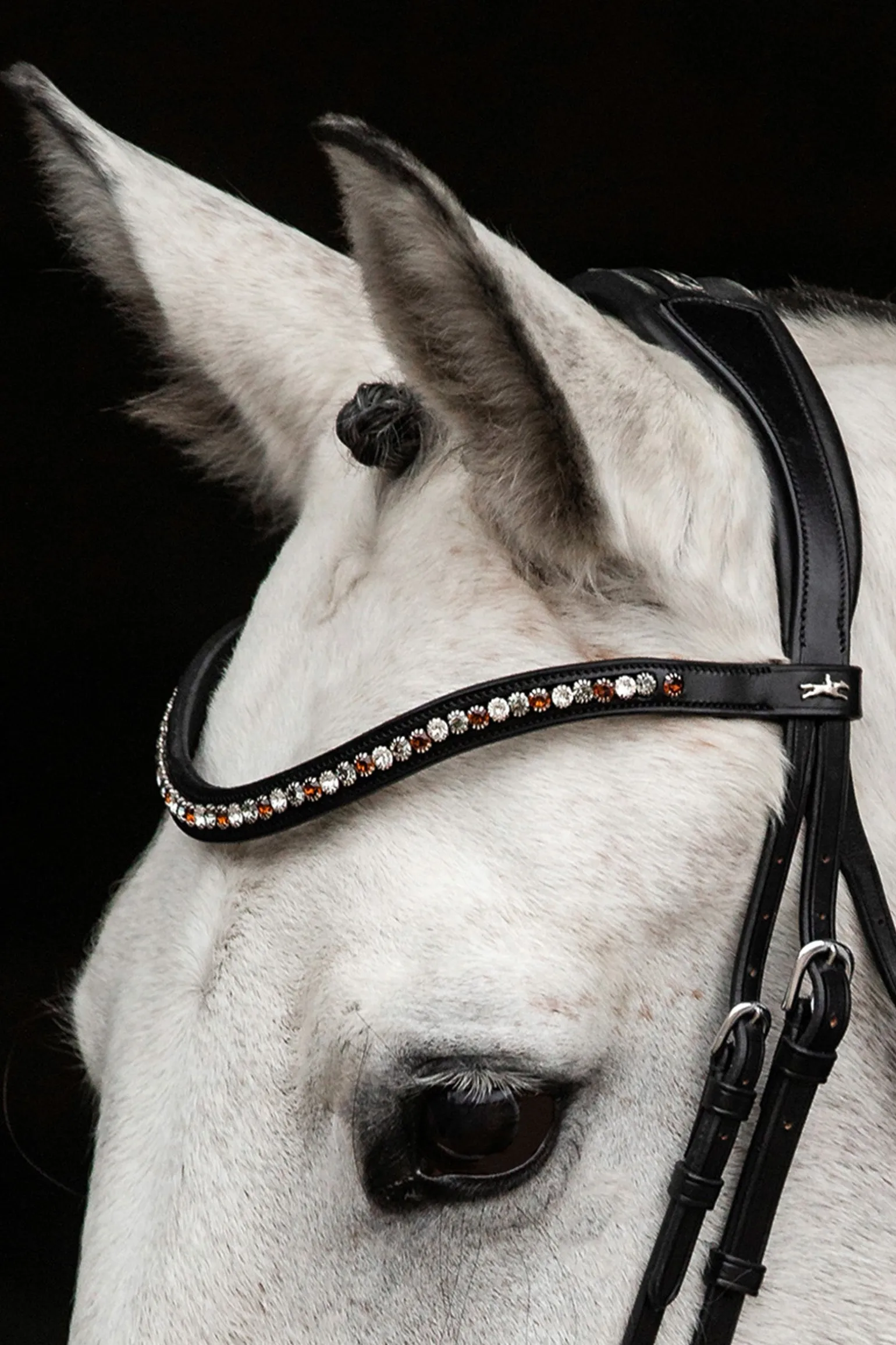 Berry, Grey, Light blue oder Peach – in diesen Farbe ist der limitierte Stirnriemen Diamond Select erhältlich. Durch die anatomische Form passt es in sämtliche Trensen der Schockemöhle Sports Anatomic Line und nimmt durch den großzügigen Schnitt den Druck vom Augen und Ohrenbereich. Durch die großen, eingelassenen Kristalle wird jedes Pferd zum Hingucker.