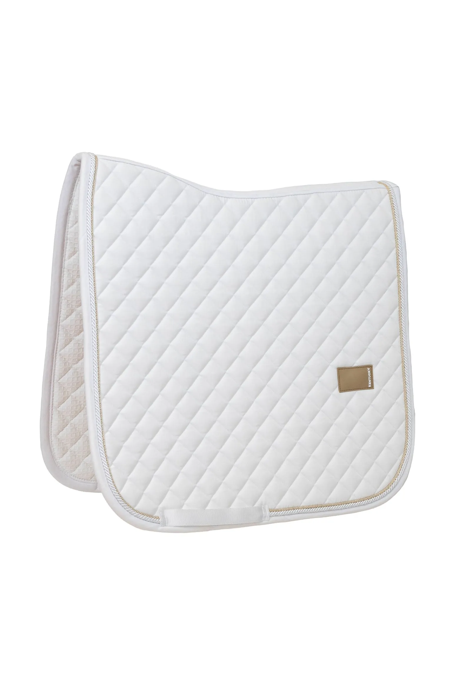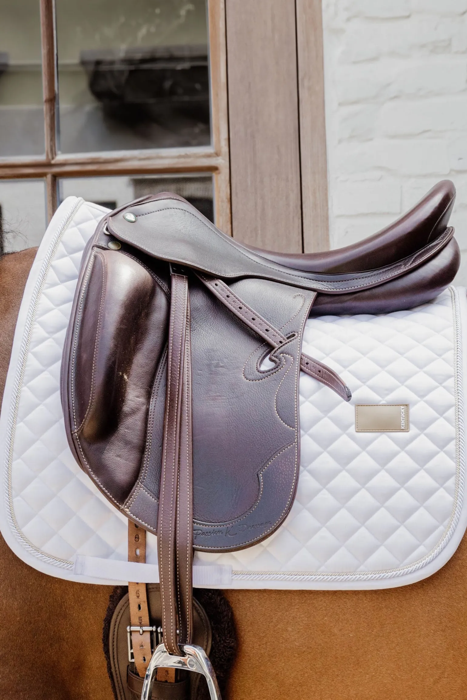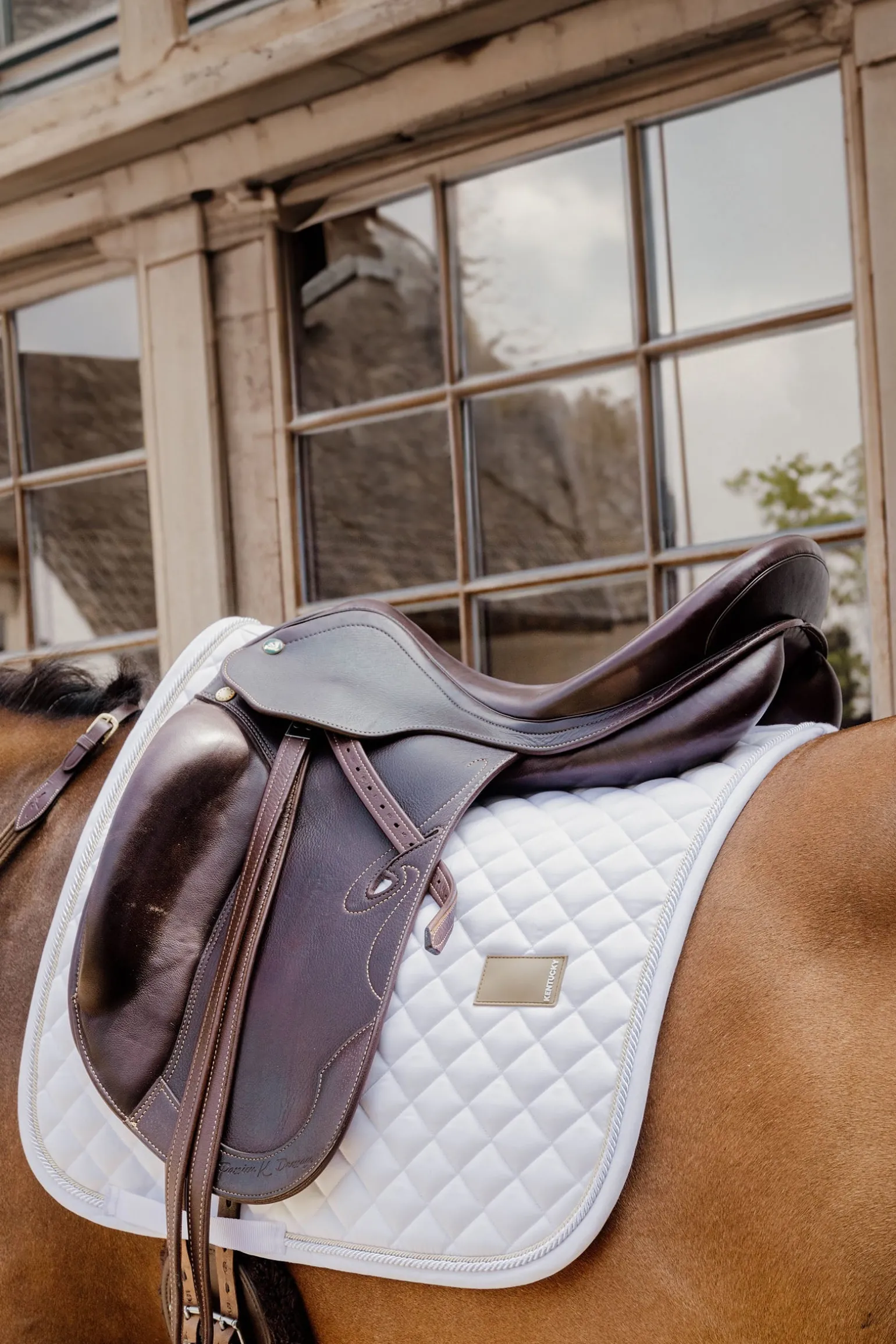 Sorge mit dieser Schabracke Diamant für einen eleganten Look und bewundernde Blicke. Diese Schabracke kombiniert elegantes Design mit höchstem Tragekomfort, den du sehen und spüren kannst. Die im klassischen Stil gehaltene Schabracke Diamant mit auffälliger Bordüre verleiht deinem Pferd einen Hauch von Exklusivität. Das edle Design sorgt für bewundernde Blicke – ob im Training oder auf dem Turnier. Die Schabracke besteht aus einem feuchtigkeitsabsorbierenden und schnelltrocknenden Baumwoll-Polyester-Gemisch. Mit ihr fühlt sich dein Pferd auch bei intensiven Trainingseinheiten wohl und kommt nicht unnötig ins Schwitzen. Innenliegend verfügt die Schabracke über eine atmungsaktive Polsterung, die einen effektiven Dämpfungseffekt zwischen Sattel und Rücken bietet. Das aufgenähte Kentucky-Logo, aus hochwertigem Gummi, verkörpert die Kentucky-Qualität bereits von Weitem. Dank der anatomischen Form passt sich die Schabracke perfekt an den Rücken deines Pferdes an und entlastet den Widerrist optimal. Kein Verrutschen, kein Drücken, kein Reiben – einfach ein sicherer Sitz, damit du selbstbewusst und kontrolliert reiten kannst, ohne dass dein Pferd beeinträchtigt wird.
