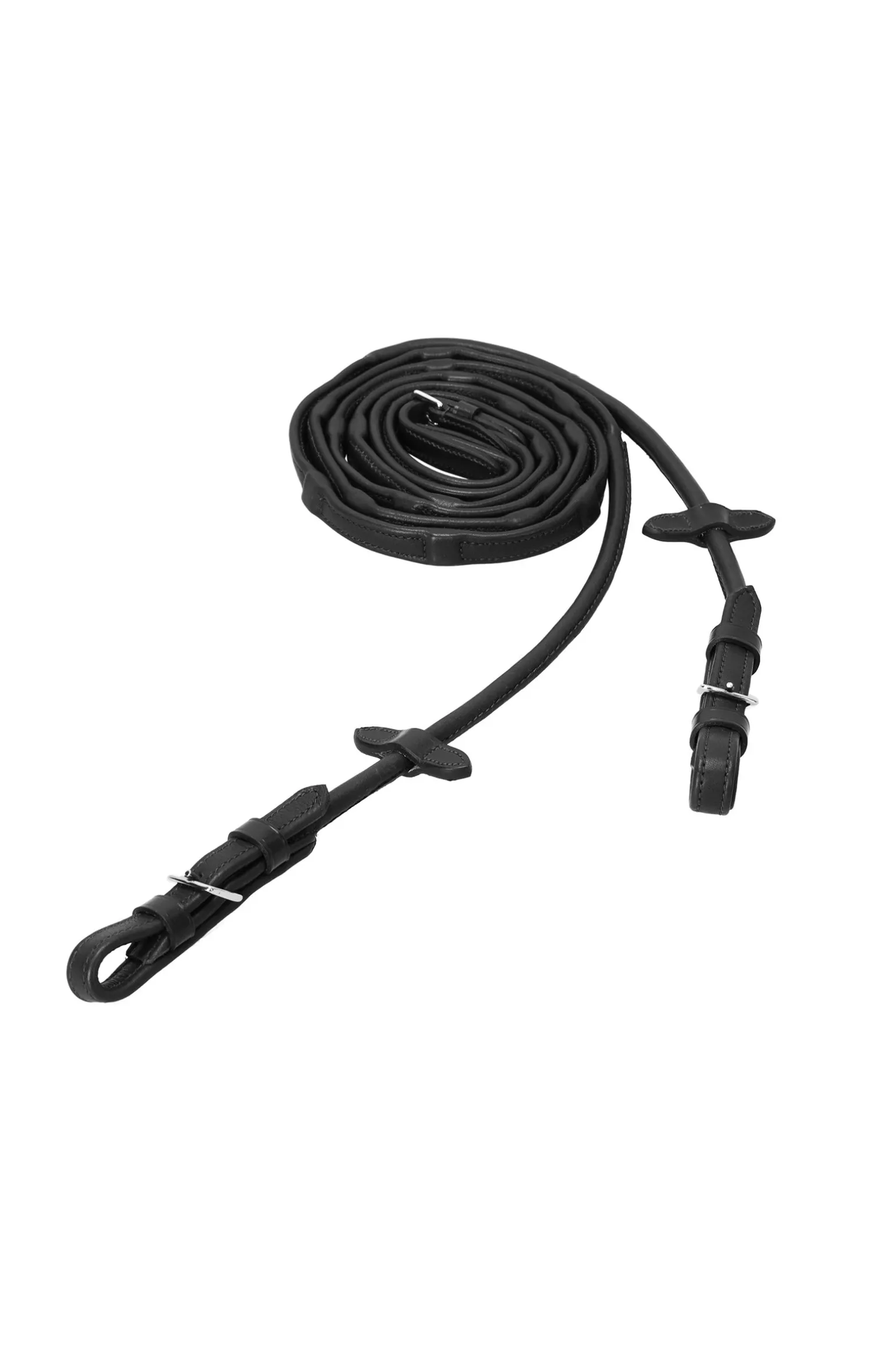 Der rundgenähte Zügel hat einen reißfesten Nylonkern, einschließlich der Gebissschlaufe. Sein Kernmaterial ist vergleichbar mit dem Material eines Sicherheitsgurts.