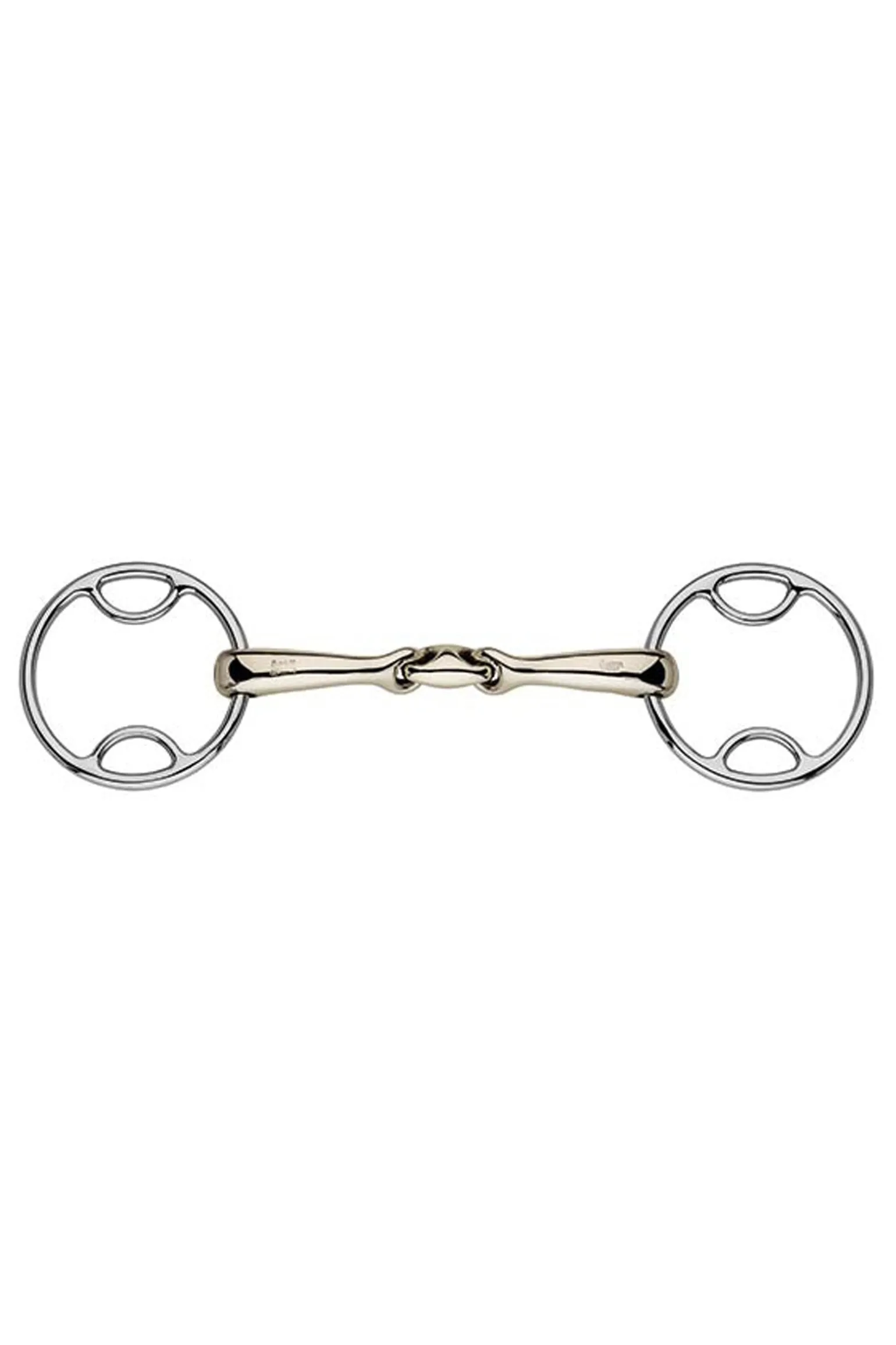 Mundstück: Doppelt gebrochen.Material: Sensogan mit Edelstahlseiten.Gebissstärke: 16 mm.Ringdurchmesser: 70 mm.Gebissringart: Universal.