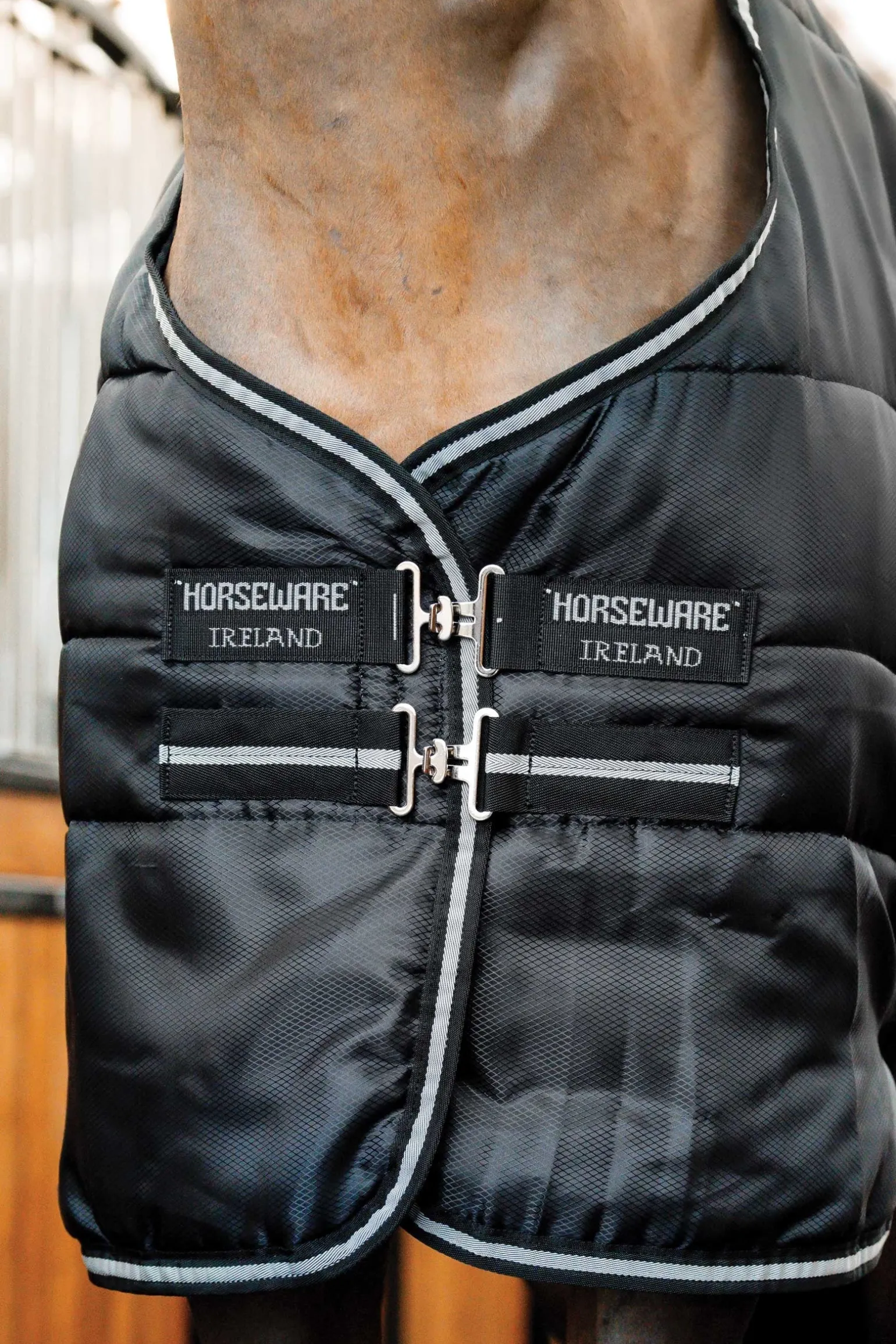 Entdecke die herausragend vielseitige und praktische Stalldecke Horseware® Easy-Layer Stable Plus (200g Medium). Diese Stalldecke ist perfekt durchdacht, so dass sie alle Bedürfnisse deines Pferdes erfüllt. Sie kann ideal als Mid-Layer verwendet oder in eine schwerere Stalldecke und sogar einen Liner für eine Weidedecke verwandelt werden. Ob du sie nun als eigenständige Stalldecke, mit Horseware®-Liner oder in Kombination mit einer Horseware®-Liner-kompatiblen Weidedecke einsetzt, diese Decke bietet maximale Flexibilität. Die Easy-Layer Stable Plus (200g Medium) ist aus 210D Ripstop-Polyester in Diamantenstruktur gefertigt und dadurch besonders robust und langlebig. Das speziell behandelte, wasserabweisende Gewebe verhindert, dass Flecken in den Stoff eindringen können, was der Geruchsbildung entgegenwirkt und die Decke länger sauber hält. Dank verschiedener Laschen und Ösen können Liner oder Außendecken schnell und einfach an der Decke angebracht werden, was die Eindeckzeit erheblich verkürzt. Der strapazierfähige, wasser- und schmutzabweisende Außenstoff wird durch eine Schicht wärmender Faserfüllung ergänzt. Diese Decke überzeugt mit einem strapazierfähigen, wasser- und schmutzabweisenden Außenstoff, der mit einer wärmenden Faserfüllung kombiniert wurde. Zur einfachen Kombination mit Horseware®-Linern oder -Weidedecken befinden sich an der Außenseite der Decke Klettverschlüsse und an der Innenseite Ösen. Halsteil-Ösen ermöglichen die Anbringung eines Halsteils, während zwei abnehmbare Kreuzgurte und der gerade Brustverschluss für einen sicheren und bequemen Sitz sorgen. Die Beinausschnitte vorne bieten ein Extra an Bewegungsfreiheit und der Schweifriemen hält die Decke sicher an ihrem Platz. Die Decke ist mit einem glanzgebenden Innenfutter aus Polyester ausgestattet, wodurch die Horseware® Easy-Layer Stable Plus (200g Medium) nicht nur funktional und stilvoll ist, sondern auch hohen Tragekomfort bietet. Wenn du eine vielseitige, langlebige und praktische Decke suchst, die all deine Anforderungen an eine Stall- und Weidedecke erfüllt, ist die Horseware® Easy-Layer Stable Plus (200g Medium) die perfekte Wahl.