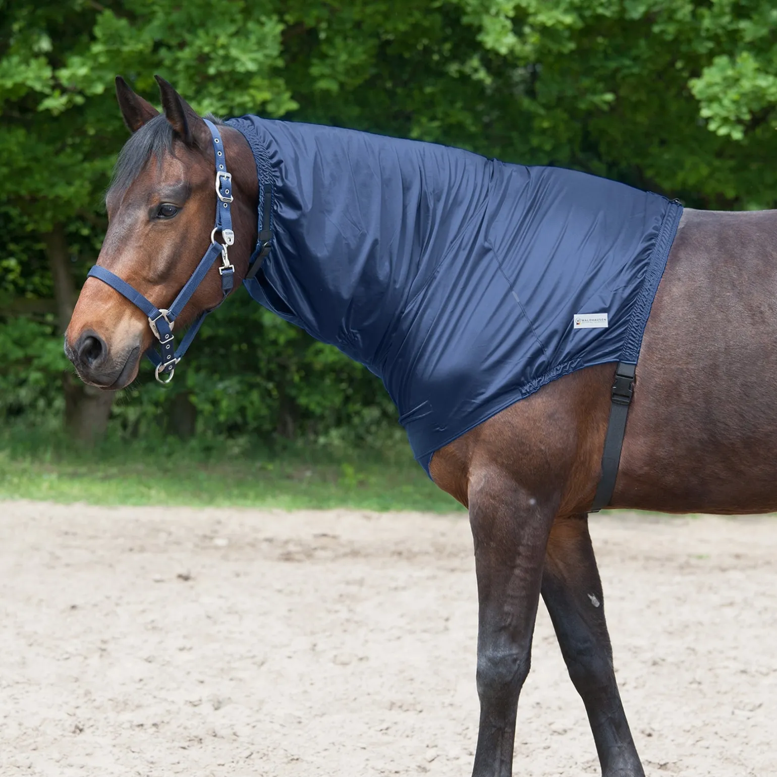 Sicherer Schutz der Mähne und des für Juckreiz anfälligen Bereiches vom Widerrist bis zum Kopf. Aus atmungsaktivem Funktions-Faserstoff. Der Bauchgurt sorgt für guten Halt.