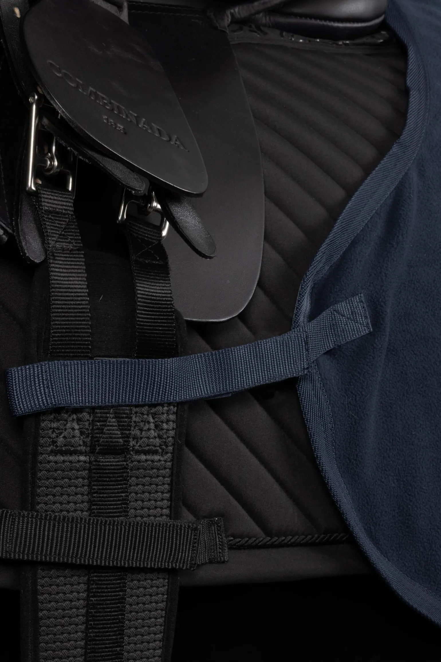 Fleece-Reitdecke mit abnehmbarem Teil für den Reiter – flexibel, komfortabel und praktisch im Einsatz.