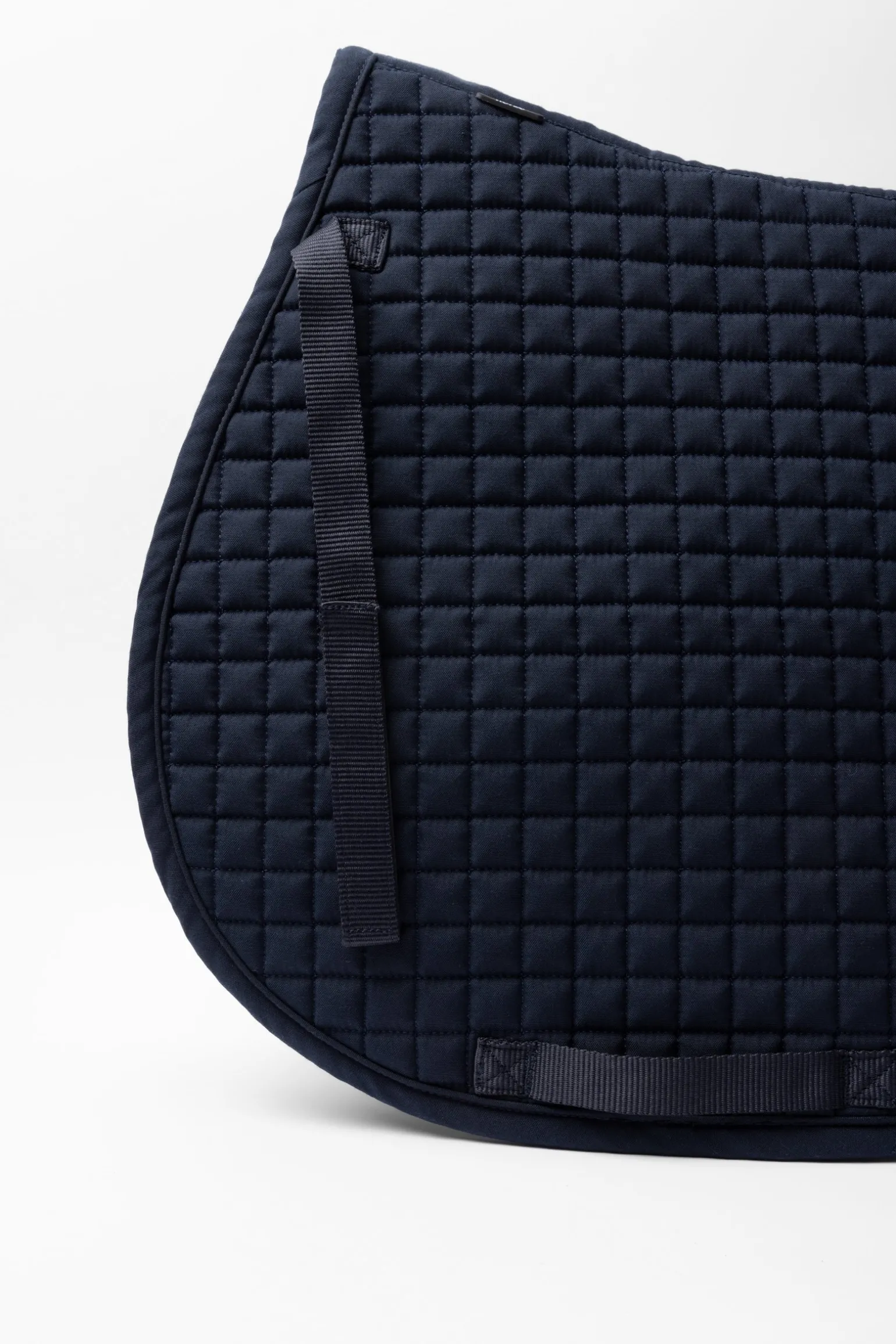 Diese Vielseitigkeitsschabracke kombiniert zeitlose Eleganz mit funktionalen Details. Das traditionelle quadratische Steppmuster sorgt nicht nur für ein stilvolles Erscheinungsbild, sondern auch für eine gleichmäßige Druckverteilung. Die robusten Nylon-Gurtstrippen mit Klettverschluss gewährleisten einen sicheren Sitz, während die Einfassung aus eigenem Stoff das Design harmonisch abrundet. Ein kleines Gummiabzeichen im Bereich des Widerrists setzt einen dezenten, aber stilvollen Akzent und verleiht der Schabracke eine edle Note.