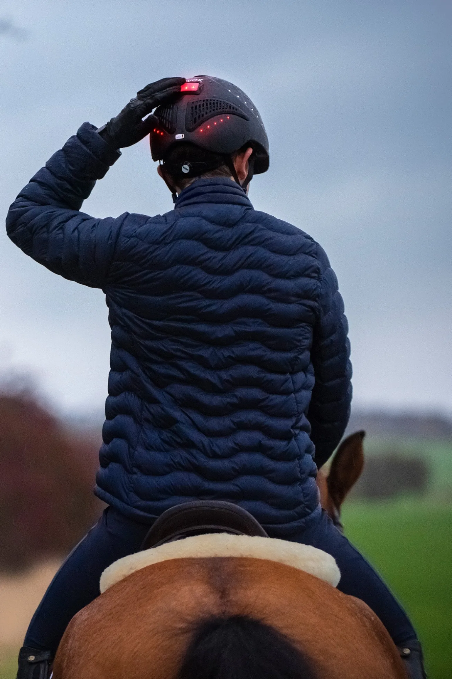 Für Reiter:innen, die bei einem Ausritt in den Abendstunden auf alles vorbereitet sein wollen, ist der uvex exxential II LED der perfekte Helm. Die passive Helmbeleuchtung ersetzt zwar keine Stirnlampe, die den Weg ausleuchtet, erhöht aber deutlich die Sichtbarkeit des:der Reiters:in in der Dämmerung und verbessert damit die allgemeine Sicherheit. Bei Bedarf stehen drei Beleuchtungsmodi zur Verfügung: konstant, blinkend und pulsierend. Die Steuerung erfolgt über ein Plug-In LED mit Magnethaftung am Hinterkopf. Dieses dient als zusätzliches Rücklicht und beinhaltet auch die Akkuanzeige. Je nach Modus hält eine Ladung zwischen 6 bis 12 Stunden. Der sehr leichte Inmould-Helm überzeugt darüber hinaus mit ergonomischem Design und einer tiefergeschnittenen Hinterkopfpartie. Die millimetergenaue Anpassung in Höhe und Weite erfolgt mittels 3D IAS-System. Das Belüftungssystem sorgt für ein perfektes Helmklima.