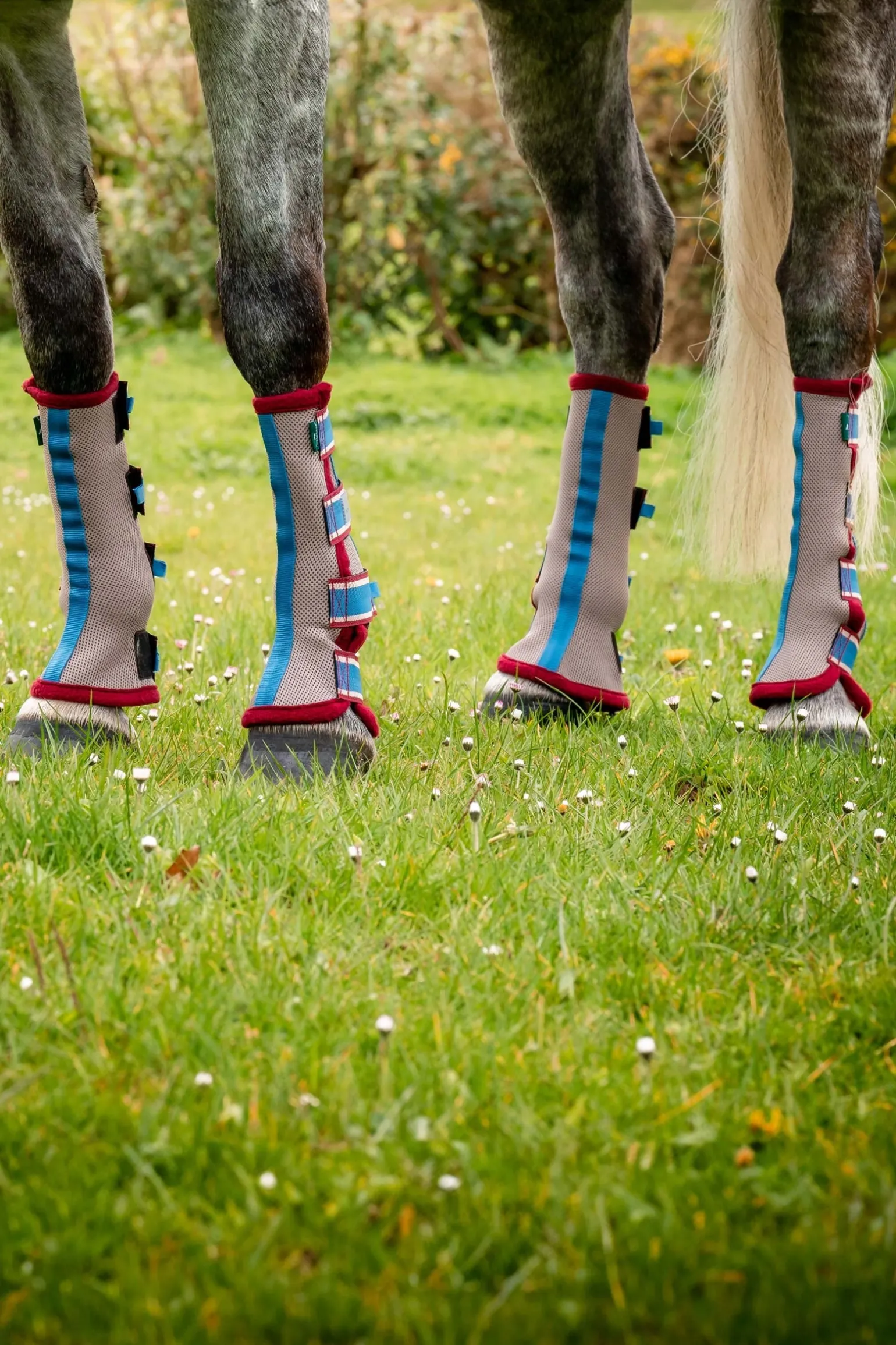 Das Airmesh-Außenmaterial schützt die Beine vor Fliegen und bietet UV-Schutz und ist gleichzeitig so weich, dass es bequem ist. Außerdem sorgt es für eine gute Luftzirkulation um das Bein herum, um Überhitzung zu vermeiden, und die Fleece-Einfassung verhindert, dass Fliegen unter die Gamaschen gelangen. Dieser Artikel wird im 4er-Set verkauft.