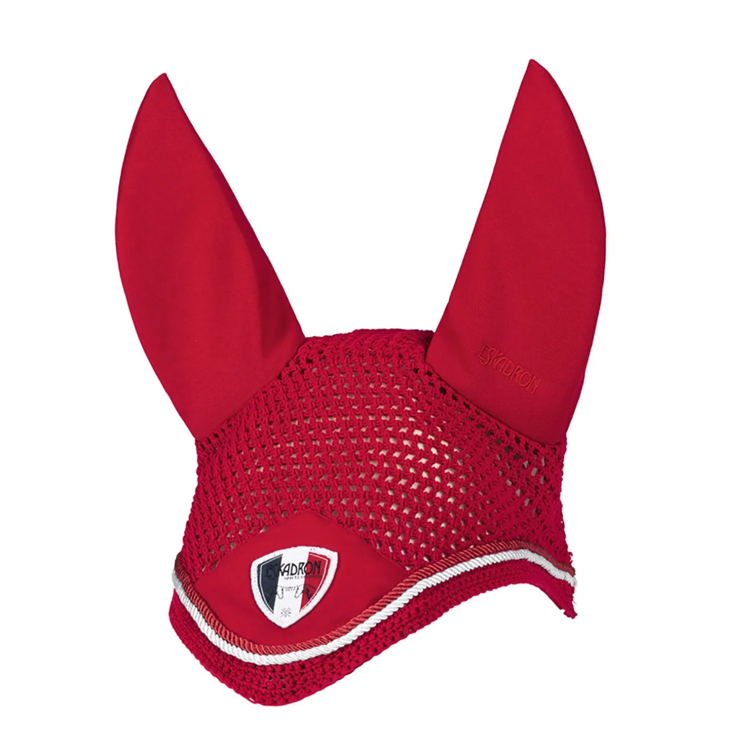 Der gehäkelte Fliegenkopfschutz mit elastischen Ohren bietet nicht nur im SommerSchutz vor Lästlingen, sondern bildet mit Kordeln und Kollektionsemblem eine harmonische Einheit zum Kombinieren innerhalb der Sports Selection.