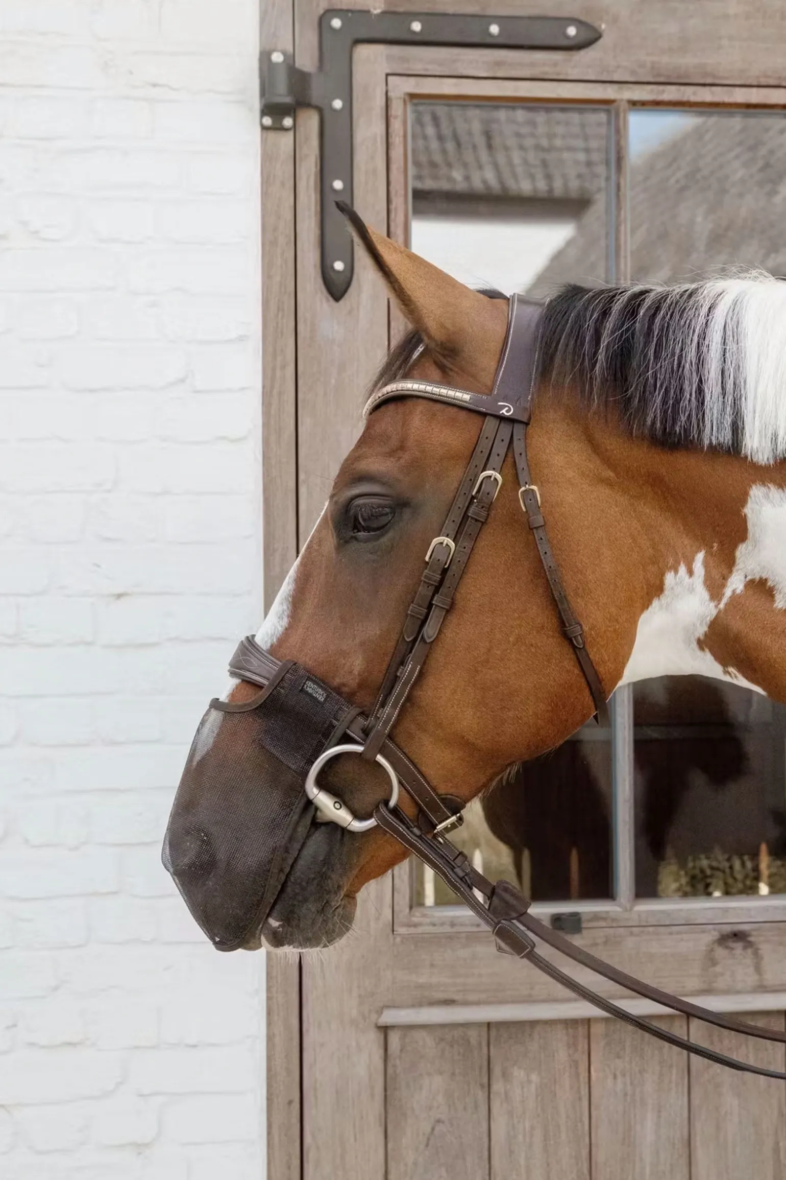 Der Anti-Fly-Nüsternschutz ist ideal für Pferde, die extrem empfindlich auf Insekten reagieren. Es kann sowohl im Training als auch auf dem Turnier eingesetzt werden. Das Netz stört weder das Gebiss noch die Atmung des Pferdes. Der Anti-Fly-Nüsternschutz kann sowohl beim Ausritt als auch im Stall in Kombination mit einem Halfter verwendet werden. Der Nüsternschutz ist aus einem widerstandsfähigen Netz gefertigt, das keine Insekten durchlässt, aber dennoch hoch atmungsaktiv ist. Es wird mit 2 Klettverschlüssen am Nasenriemen der Trense befestigt. Aufgrund der anatomischen Form des Anti-Fly-Nüsternschutzes lässt es sich leicht mit verschiedenen Arten von Nasenriemen und Halftern kombinieren.