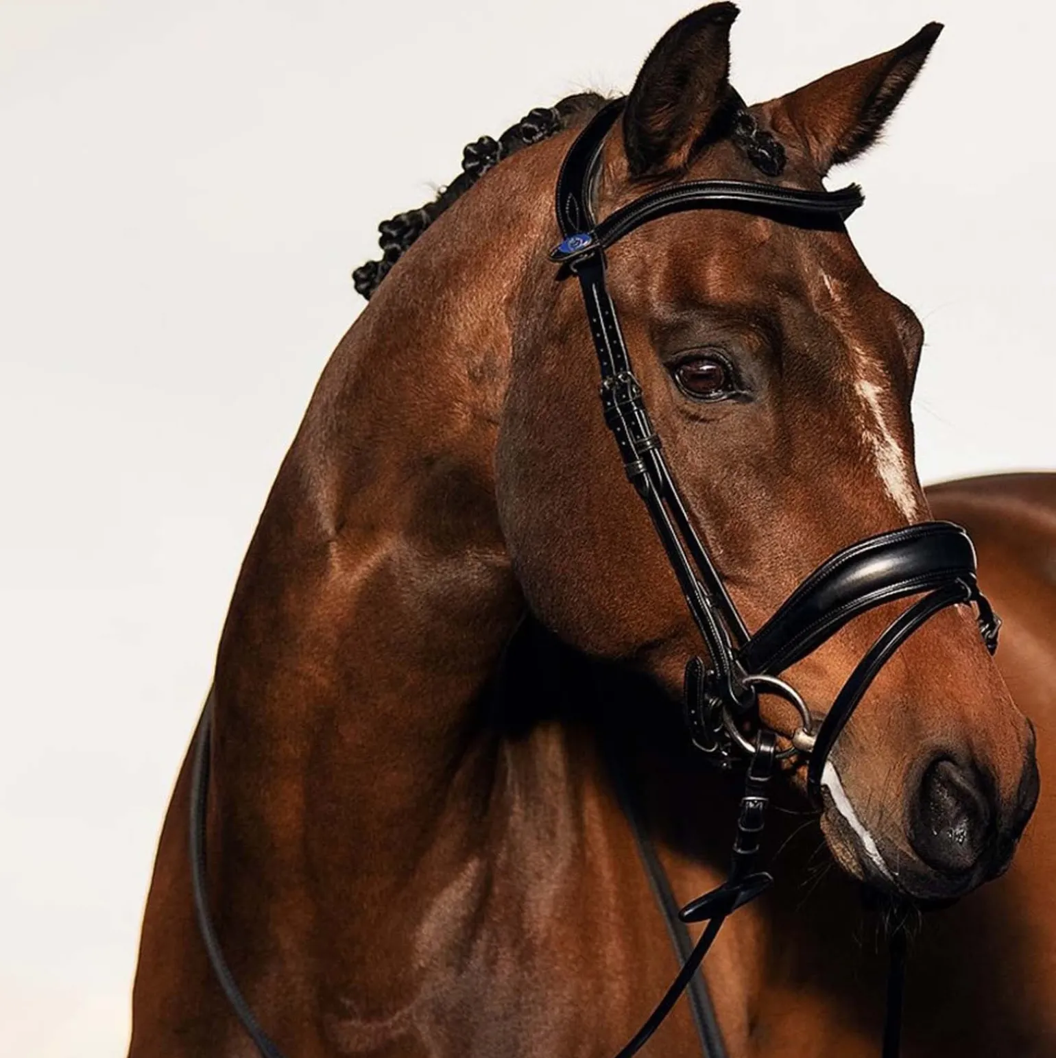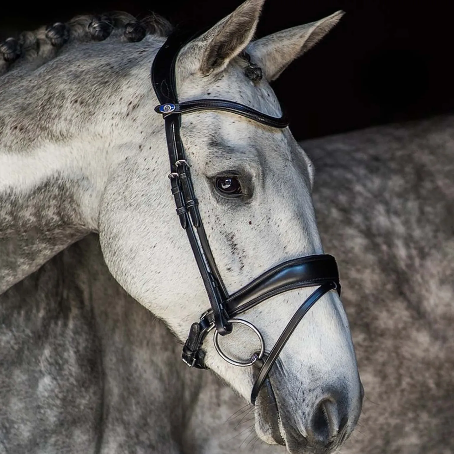 PS of Swedens meistverkaufter Dressurzaum im luxuriösen Stil mit gerolltem Leder, lackierten Teilen, horizontal verstellbaren Backenstücken, verstecktem Doppelhaken und unserer „Wiege!™“
