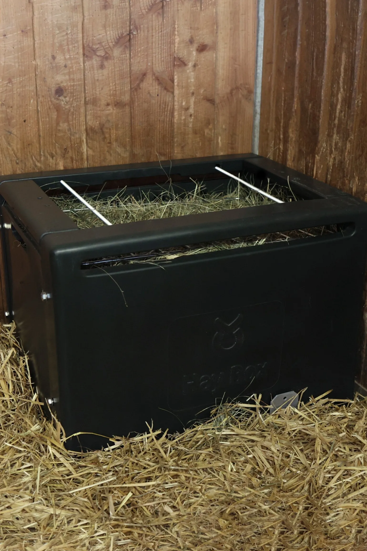 Die Heubox für die artgerechte Fütterung von Pferden. Die Futteraufnahme erfolgt langsam, aber stetig und kann so zum Wohlbefinden des Pferdes beitragen.
