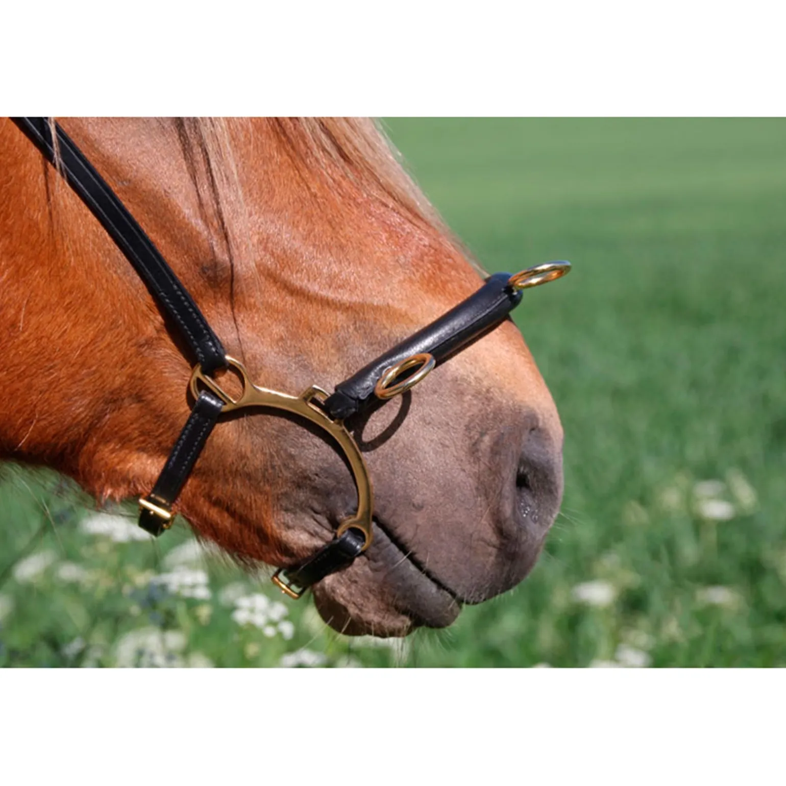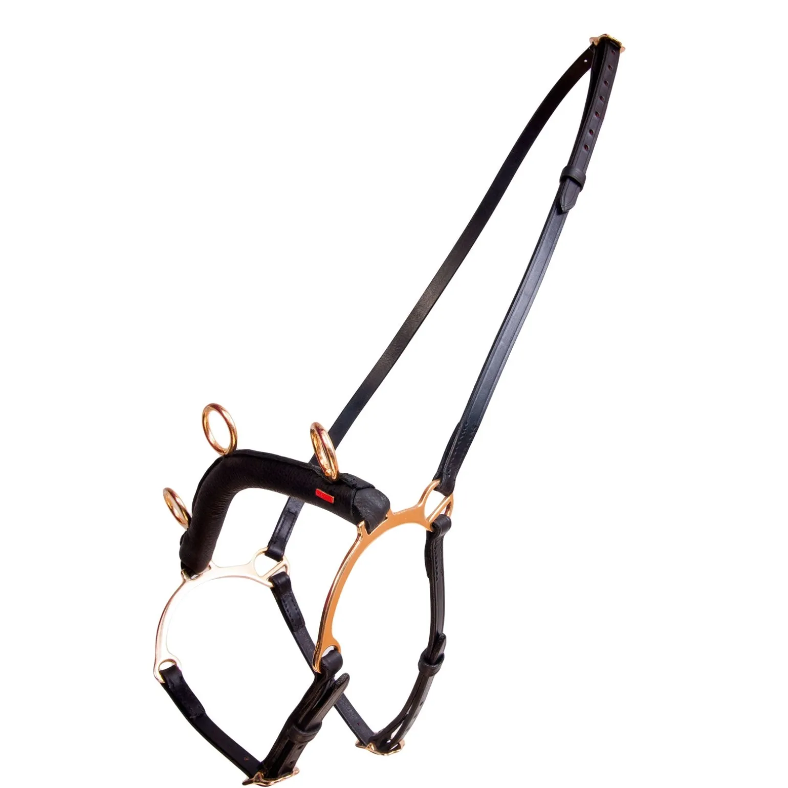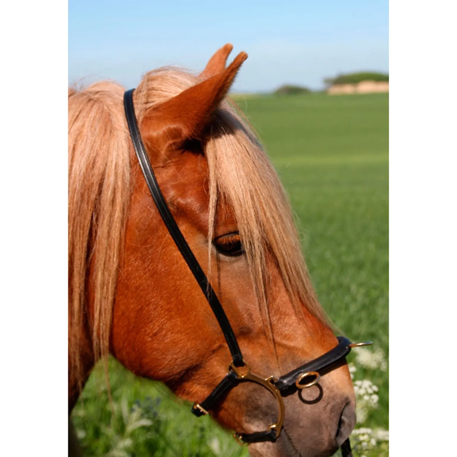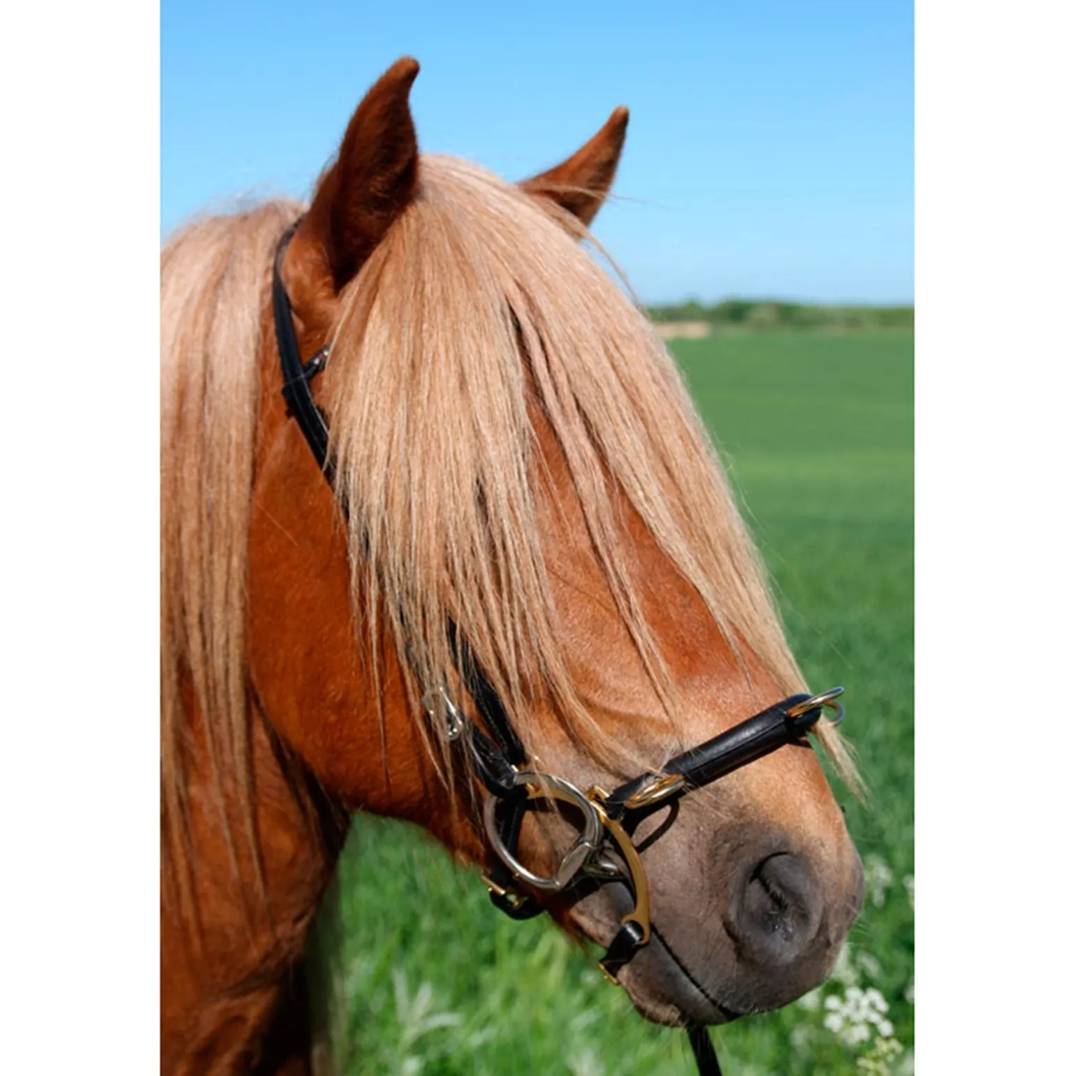 Gebissloser Zaum mit Metallbügel und 3 Ringen zum Einschnallen von Zügeln oder zum Longieren. Ähnlich dem Zaum, der von Hólar in Island, hergestellt wurde.