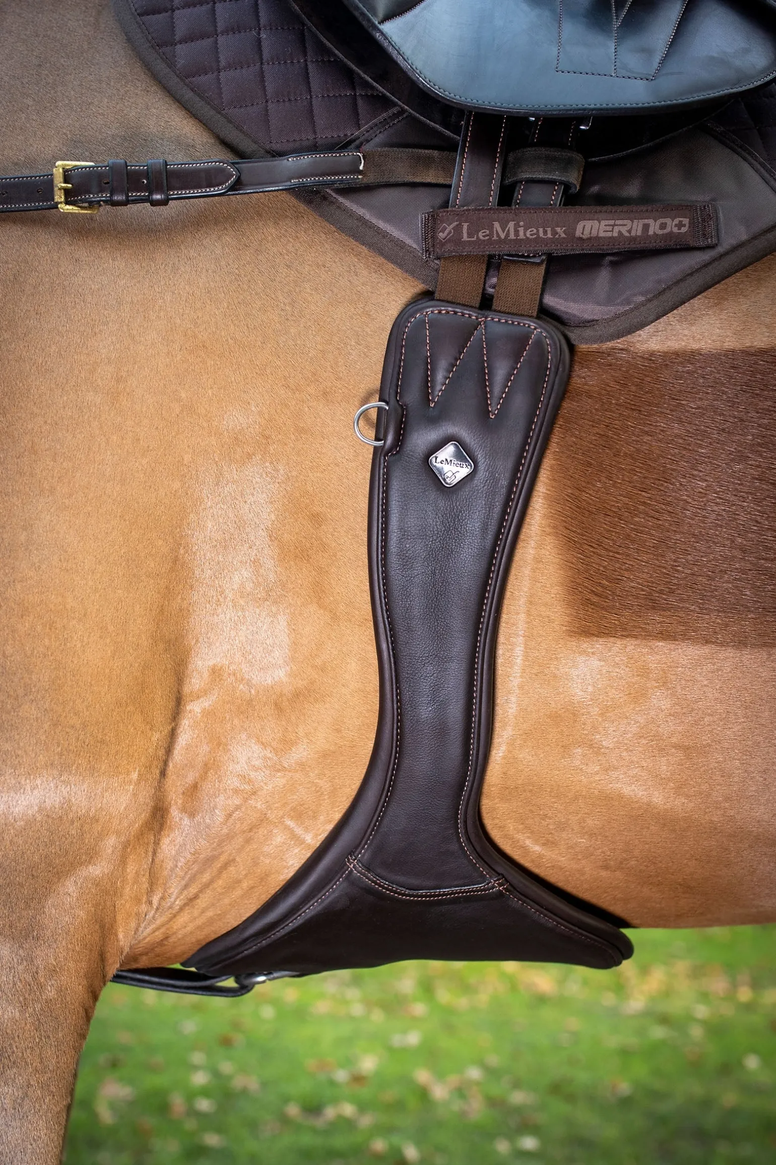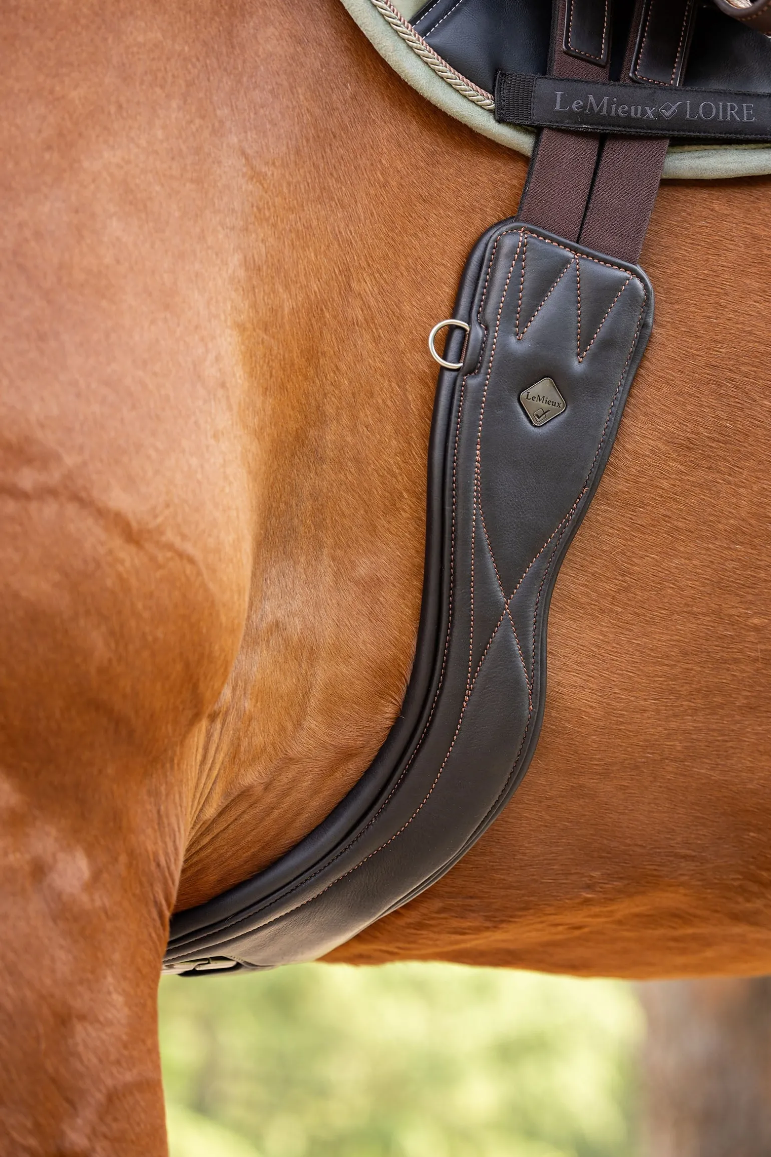Der LeMieux Gel-Tek anatomische Kurvengurt zum Springen ist ein leistungsstarker Langgurt, der maximale Bewegungsfreiheit und Komfort bietet. Gel-gefüllte Einsätze und besonders weiches Leder polstern empfindliche Bereiche, während die konturierte, zurückgeschnittene Form uneingeschränkte Beweglichkeit hinter dem Ellbogen ermöglicht. Schmal zulaufende Enden sorgen für eine gleichmäßige Druckverteilung und unterstützen eine verlängerte Schrittlänge sowie mehr Freiheit in der Luft. Ein integrierter Clip, doppelte Elastikstraps und kleine D-Ringe bieten vielseitige Befestigungsmöglichkeiten. Der Gurt verbessert die Sattelstabilität und hilft, Druckstellen und Scheuern zu vermeiden.