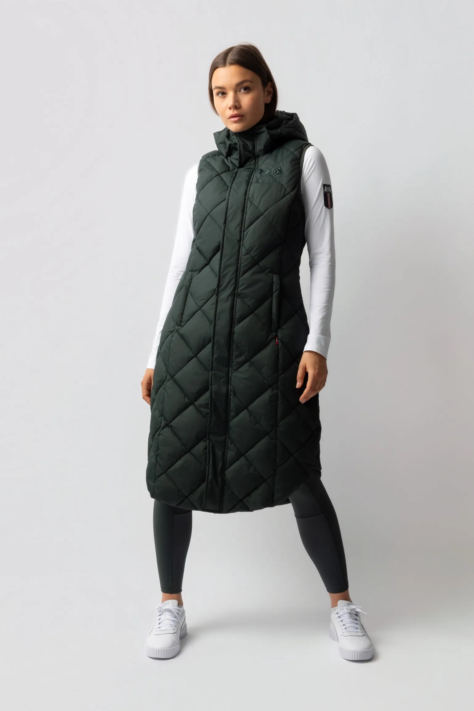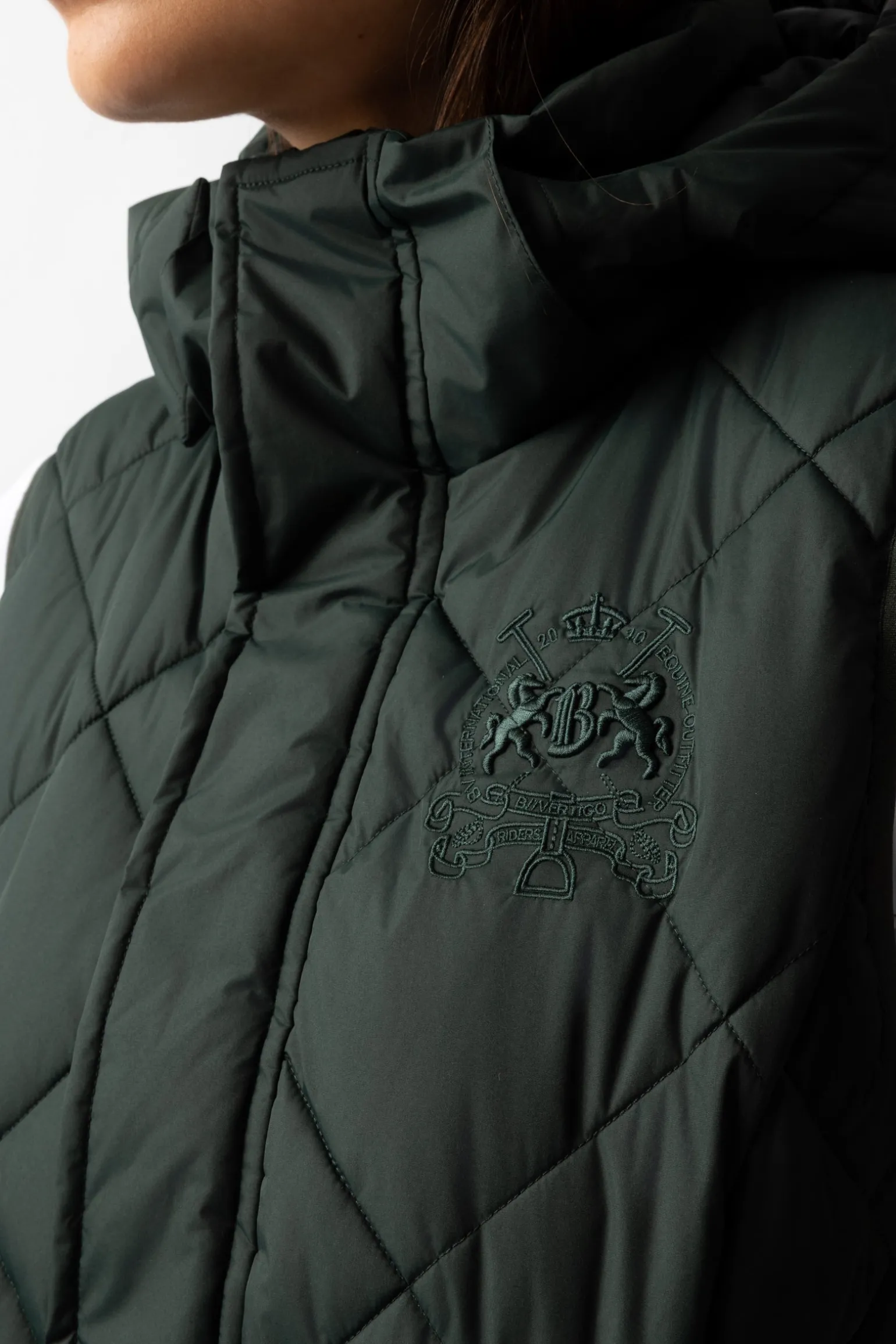 The B Vertigo Gem Long Padded Riding Vest is the ideal layering piece for cold weather. Its extended cut offers extra coverage and warmth while riding or working at the stable. Lightweight padding keeps you warm without adding bulk, allowing full freedom of movement. A high collar and two-way zipper make it easy to adjust for comfort in the saddle. With its refined design, this vest pairs perfectly with breeches or casual wear. A must-have for riders seeking both elegance and function in their winter wardrobe.