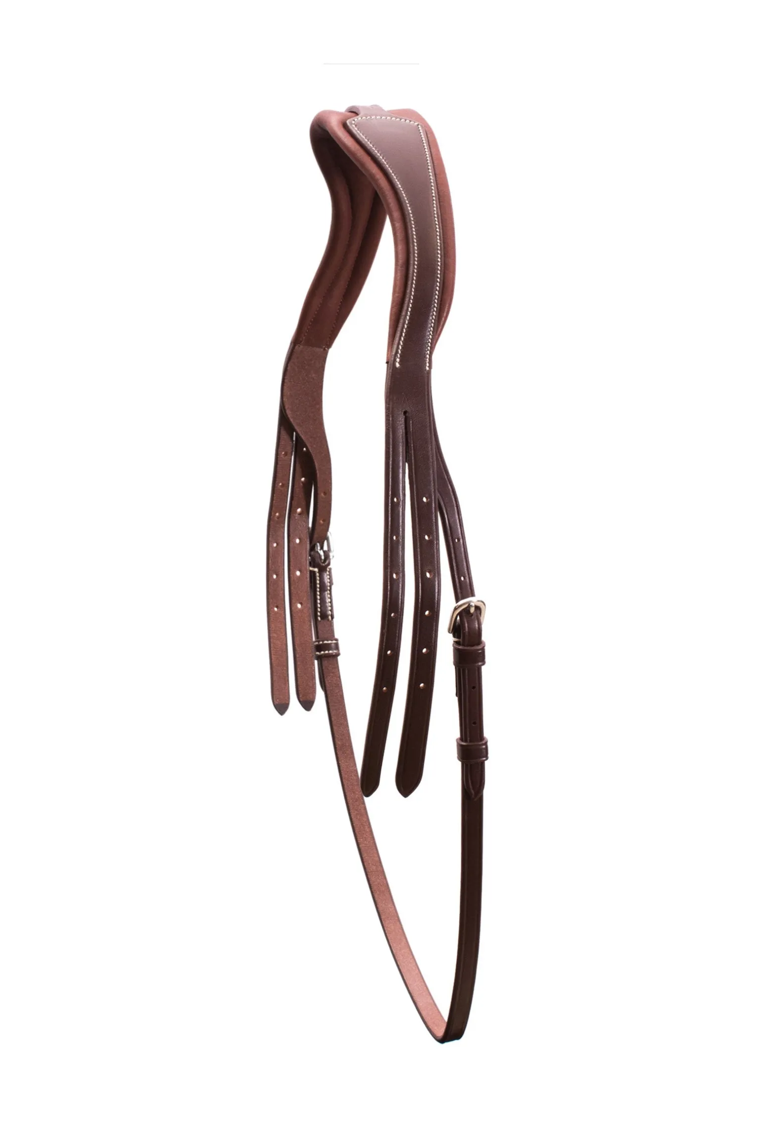 Kombinationselement der Kollektion „Anatomic Line – Select & Mix“ von Schockemöhle Sports: Das anatomisch geformte, schmale KOPFSTÜCK SELECT hat einen einzigartigen Nackenbereich, der speziell an die komplizierte Halsanatomie des Pferdes angepasst wurde. Es ermöglicht dem Pferd uneingeschränkte Bewegung der Ohren und sorgt so für einen besonders hohen Tragekomfort. Zudem wird der Druck im sensiblen Nackenbereich durch den markanten Schnitt und die besonders weiche Polsterung deutlich reduziert Der Kehlriemen ist auf beiden Seiten des Kopfstücks einstellbar.