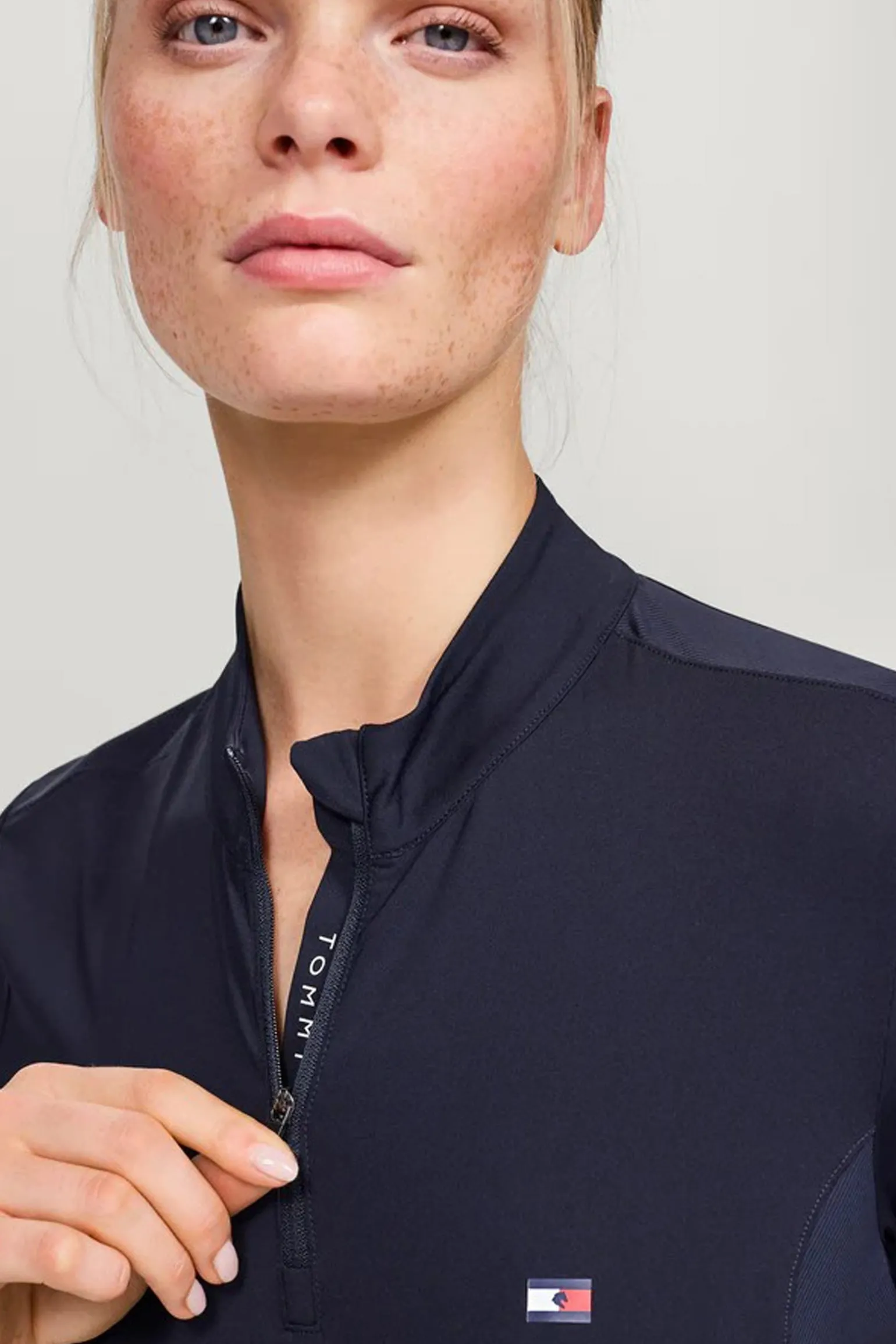Erlebe ultimativen Komfort und Stil mit unserem Train Top Genoa! Der verdeckte Reißverschluss mit Tommy Hilfiger Logo verleiht dem klassischen Design eine besondere Note, während das leichte 4-Wege-Stretchmaterial sich wie eine zweite Haut anfühlt. Die figurbetonte Passform mit seitlichen Einsätzen sorgt bei jedem Training für eine schmeichelhafte Silhouette.