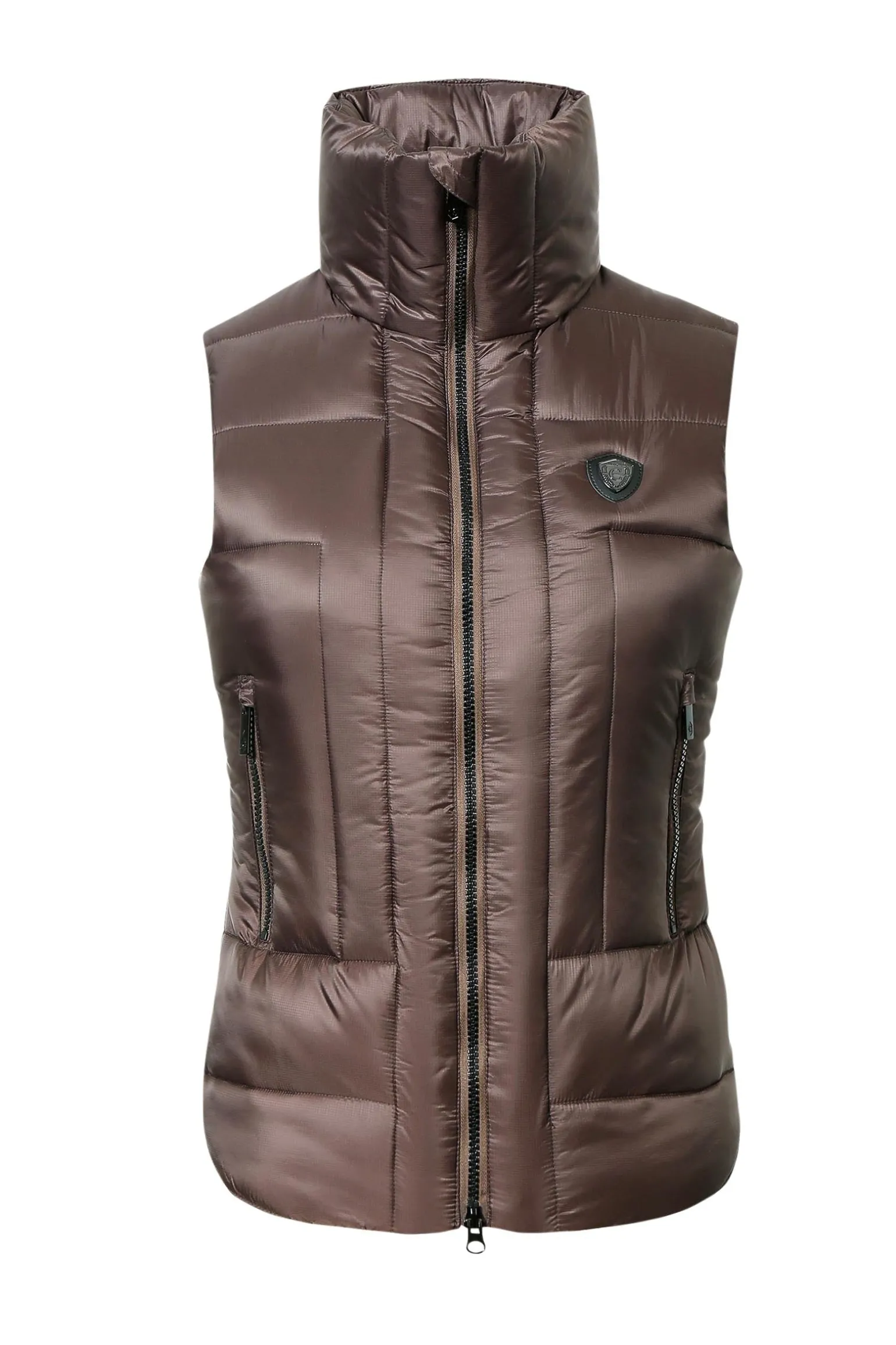 Die Weste mit femininem Schnitt ist ein praktischer Begleiter im Alltag und auch im Stall. Der hohe Kragen, wasserabweisendes Material und extra wärmende Taschen für die Hände halten dich auch bei ungemütlichem Wetter warm.