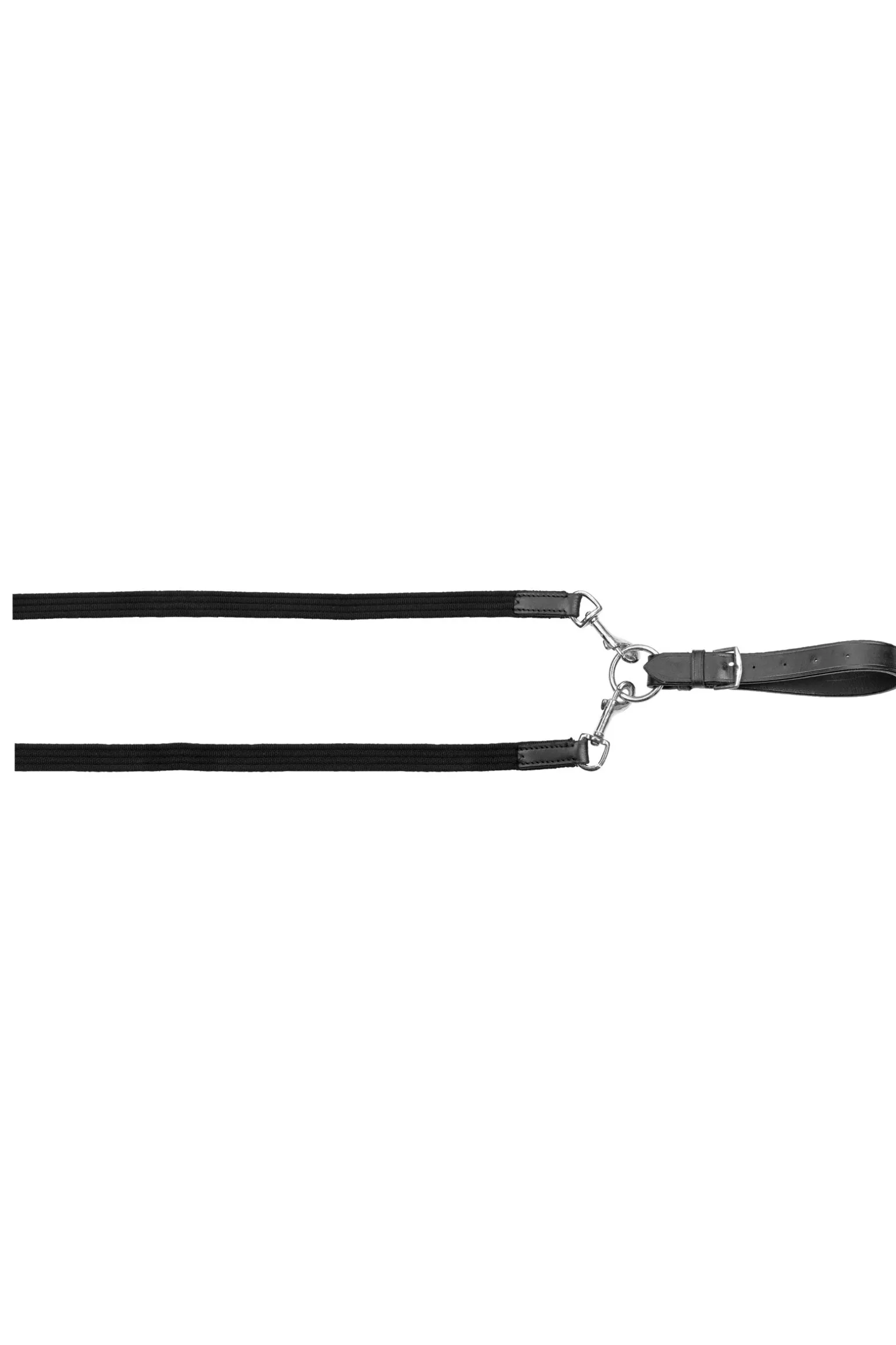 Die Hilfszügel werden einfach am Gurt angebracht, laufen durch die Gebissringe zurück zur Reiterhand. Diese Schlaufzügel helfen, den Kopf in eine vorwärts-abwärts Position zu weisen und durch die sanfte Einwirkung des Reiters öffnet das Pferd den Rücken und läuft rund.