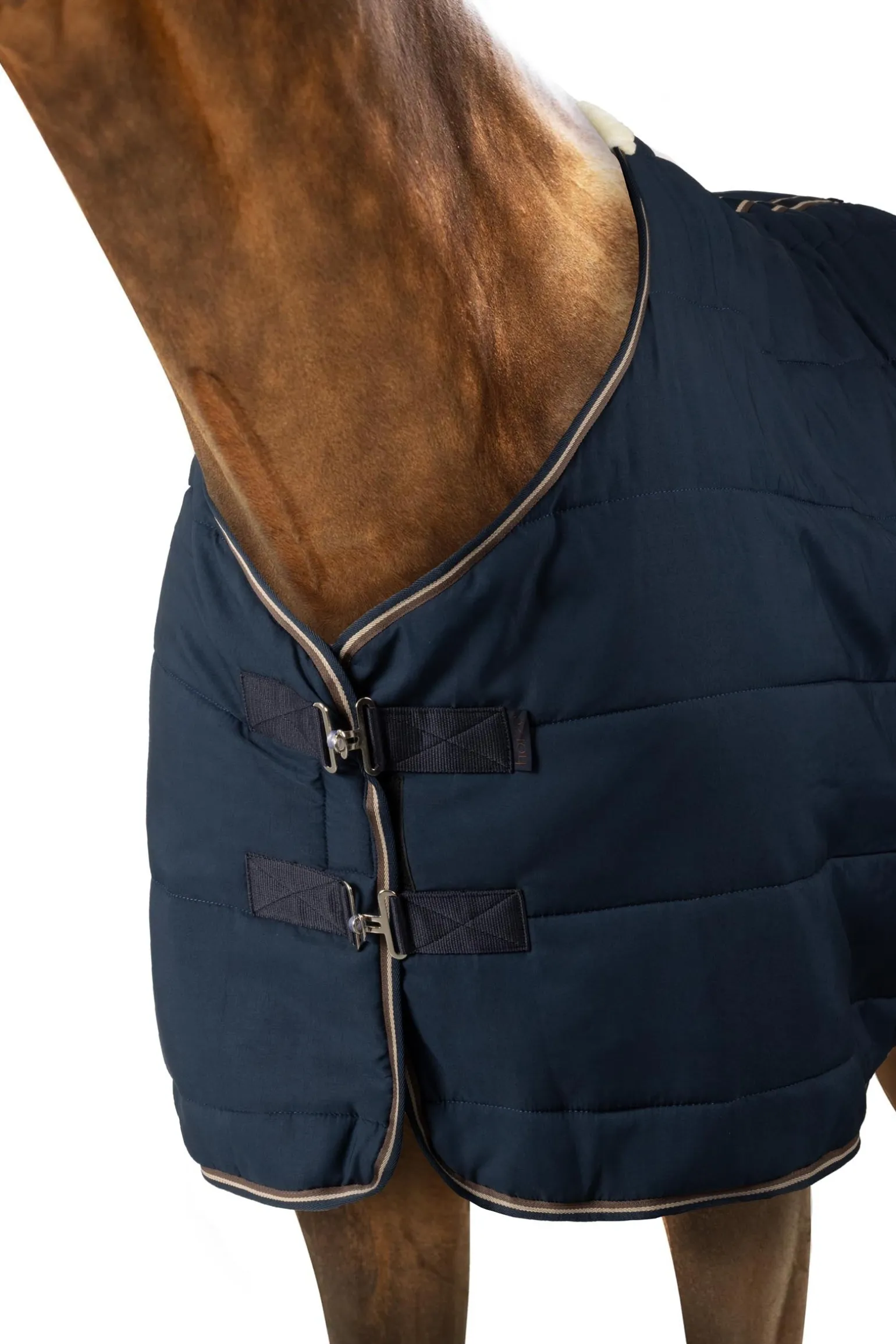 Diese leichte Unterdecke kann allein oder in Kombination mit einer Regendecke getragen werden. Das leichte, atmungsaktive Material ist mit einer Anti-Rutsch-Oberfläche ausgestattet. Zusätzliche T-Schnallen, Kreuzgurte und ein Schweifriemen halten die Decke in Position. Das Kunstfell am Widerrist ist super weich und sorgt für Komfort. Ein zeitloses Design macht sie zu einem jahrelangen, treuen Begleiter.