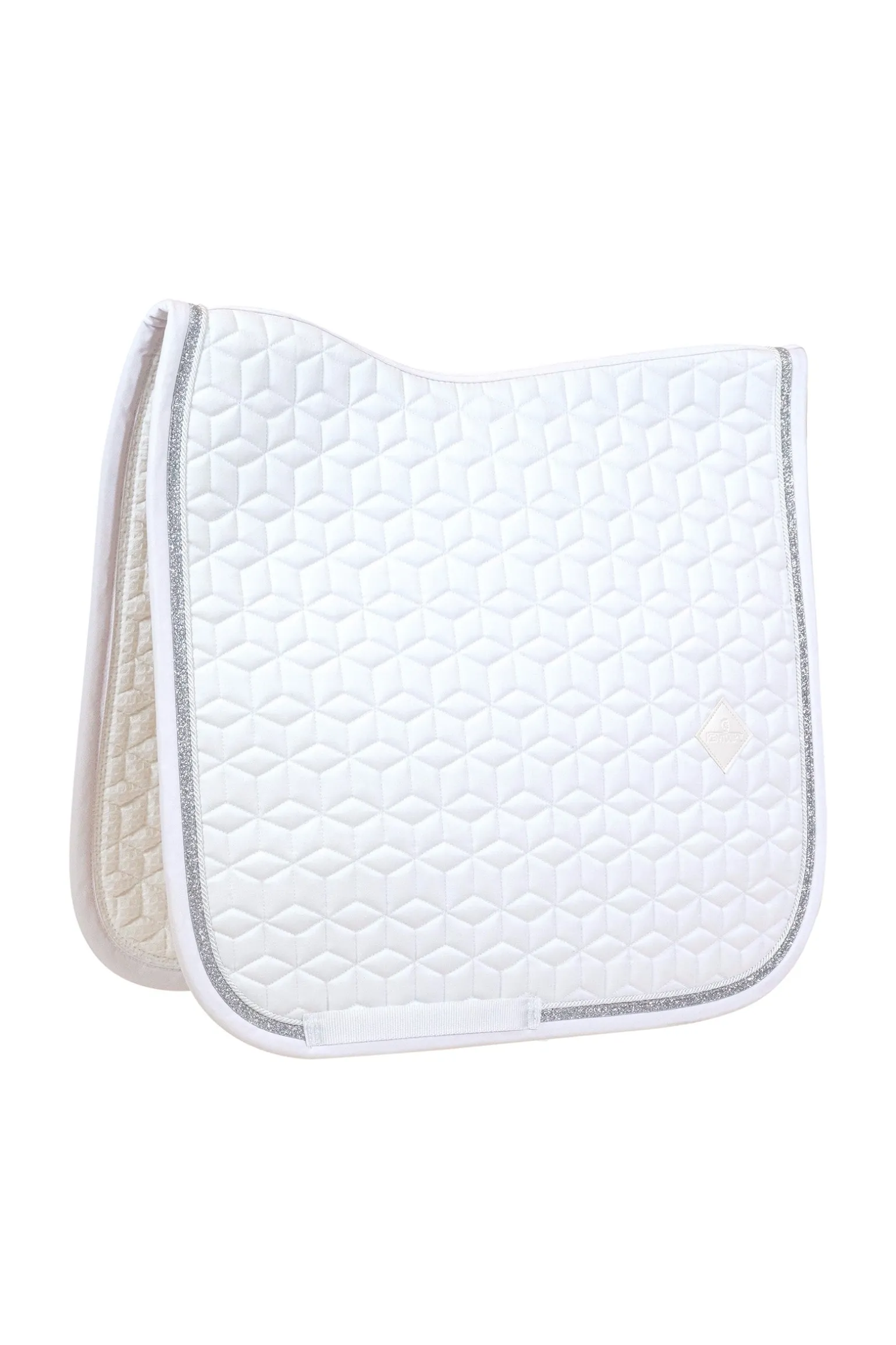 Die Kentucky Schabracke mit Glitzereinfassung ist für Springen oder Dressur geeignet und polstert hervorragend zwischen Pferderücken und Sattel, so dass sie vor Verspannung schützt. Diese Schabracke hat eine einzigartige Sternsteppung und eine atemberaubende Einfassung mit einer Glitzerkordel.