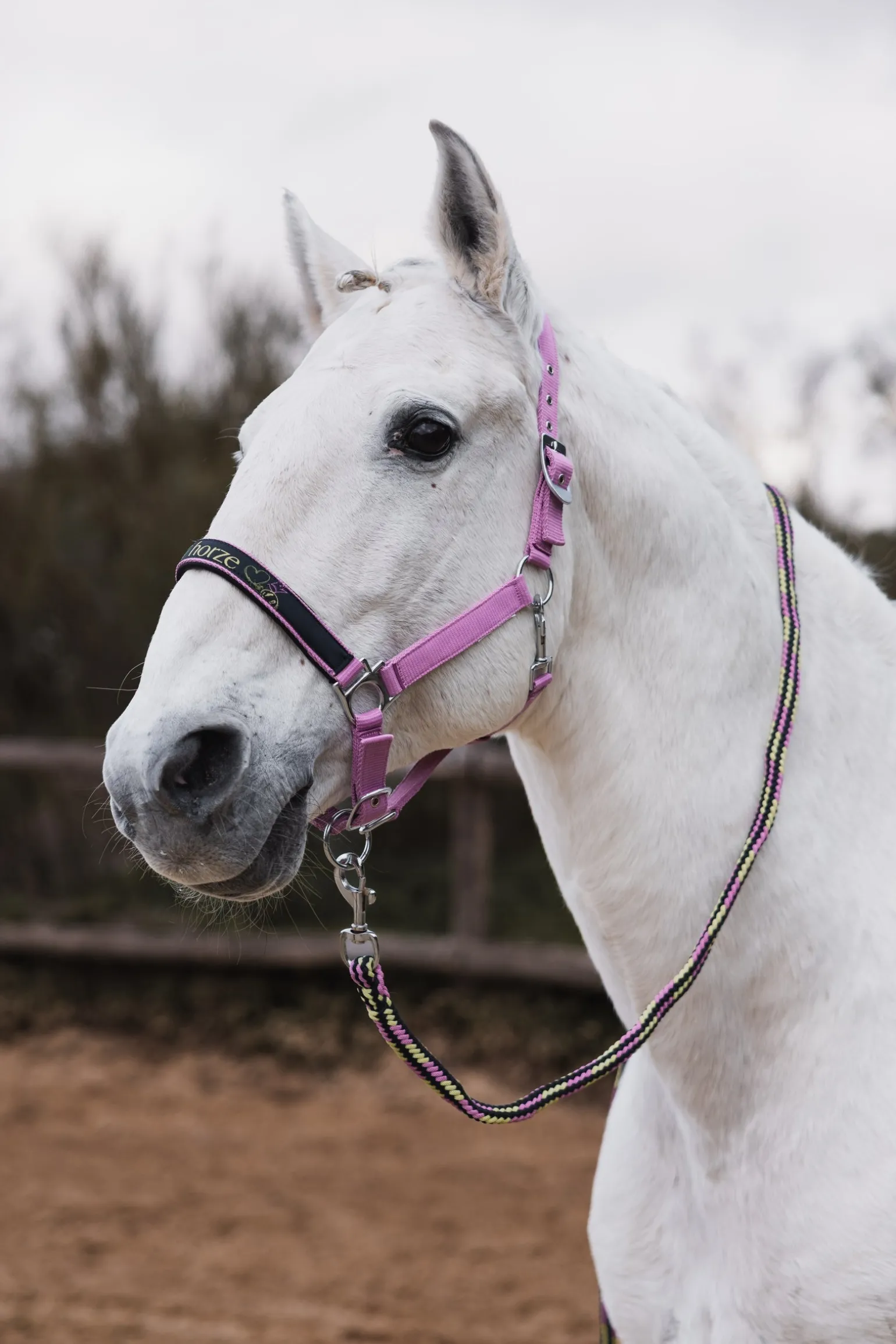 Dieses Halfter & Führstrick Set kombiniert Komfort und Funktionalität. Das Halfter verfügt über einen weich gepolsterten Nasenriemen und ein Genickstück mit Neoprenfutter für höchsten Tragekomfort. Der Genickriemen lässt sich individuell anpassen, während der praktische Karabinerhaken ein einfaches An- und Ablegen ermöglicht. Auch der Nasenriemen ist verstellbar, um eine optimale Passform zu gewährleisten. Edle Jacquardband-Details am Nasenriemen verleihen eine stilvolle Optik. Inklusive passendem Führstrick.