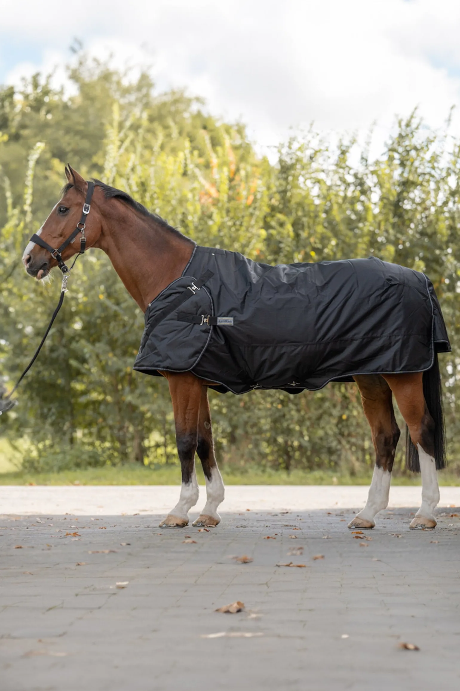 Dank des schnellen und einfachen Austauschs des Brustgurts kann die Decke Halifax sowohl als Outdoordecke als auch als Führanlagendecke (im Freien) verwendet werden. Es gibt zwei Befestigungsoptionen für den Brustgurt: Die untere Befestigung ist besonders für schmalere Pferde geeignet. Die Decke Halifax 2in1 gibt deinem Pferd die Bewegungsfreiheit, die es in der Führanlage oder auf dem Laufband benötigt. Die Outdoordecke bietet ebenfalls diesen Komfort: Da die Decke an den Schultern nicht geschlossen ist, wie es bei herkömmlichen Outdoordecken der Fall ist, hat dein Pferd ausreichend Bein- und Schulterfreiheit, ohne dass sich die Decke an den Schultern dehnt. Der anatomisch geschnittene Rückenbereich mit hervorstehendem Widerrist sowie die Schweifklappe und der tiefe Schweifriemen sorgen für einen idealen Sitz ohne Verrutschen. Die tiefer geschnittenen Seiten der Decke Halifax 2in1 schützen auch den empfindlichen Bauchbereich vor Kälte. Die Polsterung am Widerrist und das glatte Innenmaterial geben deinem Pferd den Komfort, den es benötigt.