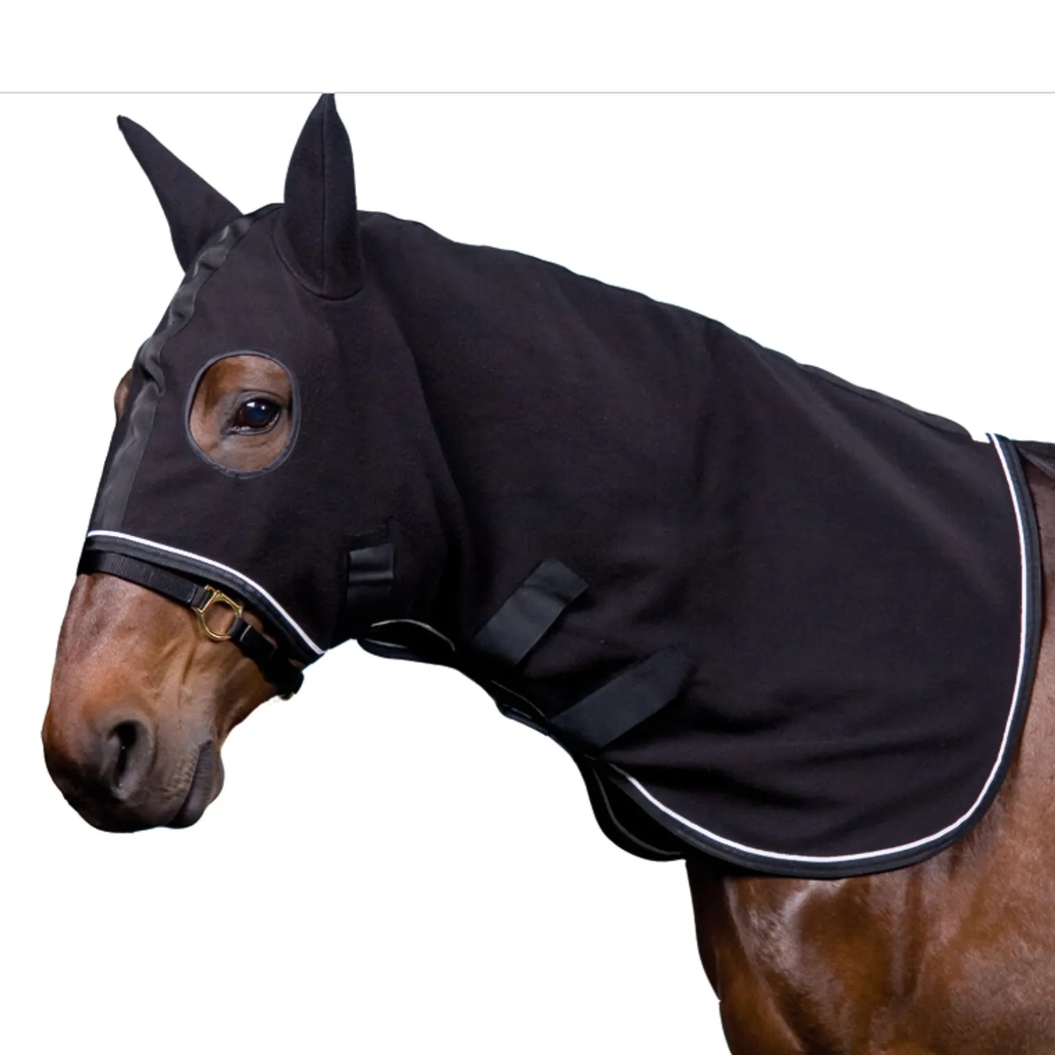 Fleece-Halsteil, welches für die Decken 24636 oder 24641 an kalten Tagen verwendet werden kann. Trocknet und schützt den Kopf, die Ohren und den Hals des Pferdes. Mit drei Klettverschlüssen ausgestattet.