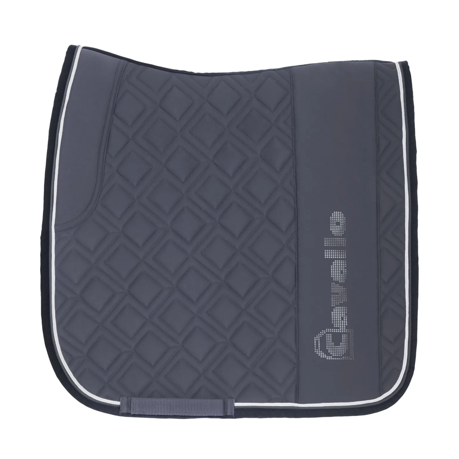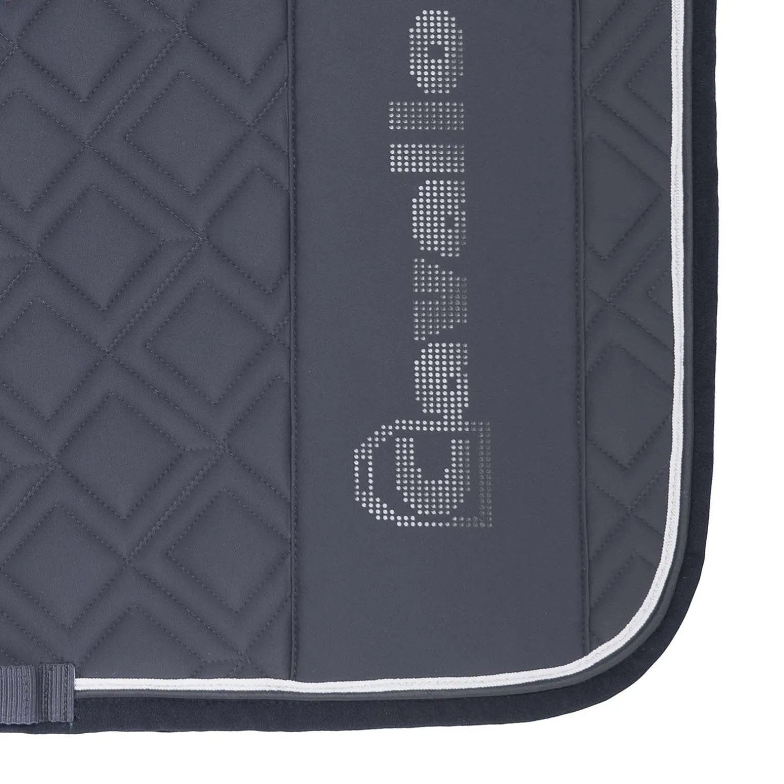 Eine sportliche Funktionsschabracke aus elastischem Softshell Material. Der Oberstoff aus Softshell ist besonders pflegeleicht. Allover mit Double Diamond Steppung versehen. Beidseitig an der Hinterseite mit einem vertikalen, glatten, tonalen Streifen versehen. Auf dem Streifen befindet sich ein perforiertes, großes, vertikales Cavallo Logo. Unter den Löchern des Cavallo Logos befindet sich schimmerndes Reflexmaterial. Die Verstärkung aus Memory Schaum an der Vorderseite gewährleistet eine optimale Lage unter dem Sattel. Eingerahmt wird die Schabracke von einem weißen Band mit schmalem silbernen Streifen. Das schnell trocknende und Feuchtigkeit transportierende Mesh-Futter ist besonders fellfreundlich und bietet höchsten Komfort. Eine formbeständige Wattierung ermöglicht der Schabracke eine perfekte Lage auf dem Pferderücken.