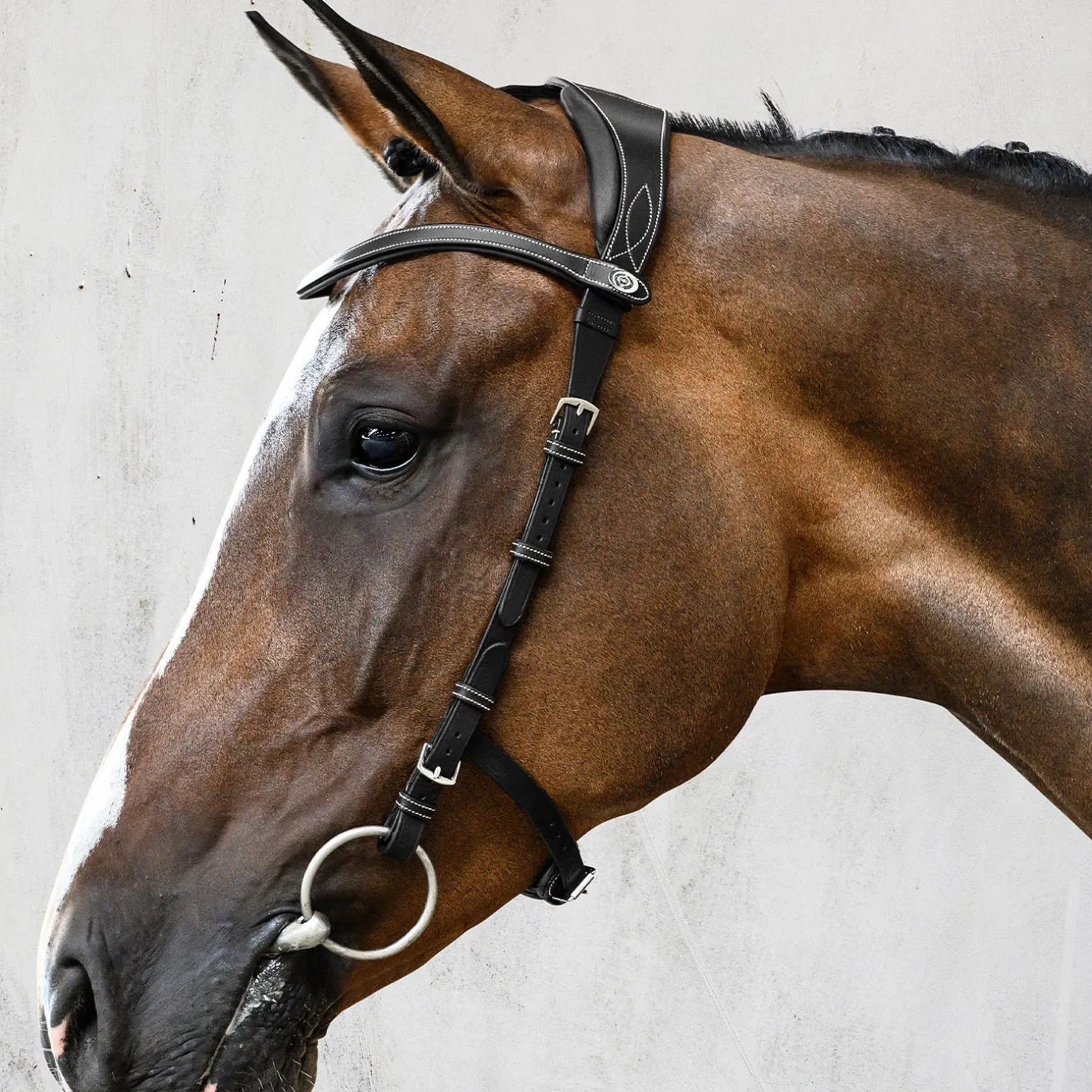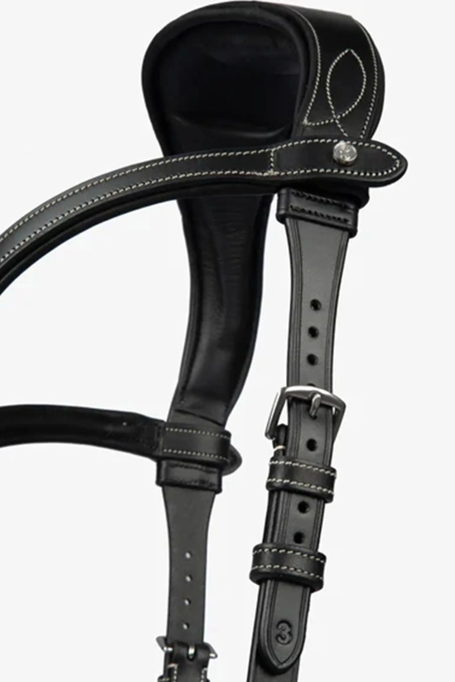 Die perfekte Trense für Tierarztkontrollen, Turniere und alle Anlässe, an denen ein Gebiss notwendig ist und es schön und praktisch sein soll. In der Mitte des Genickstücks befindet sich ein speziell eingearbeitetes Luftkissen für die optimale Schonung der empfindlichen Nervenbahnen und Muskelansätze in diesem Bereich. Der Ohrenausschnitt sorgt durch seine anatomische Form und die weiche Polsterung ebenfalls für ein besonderes Wohlbefinden des Pferdes.