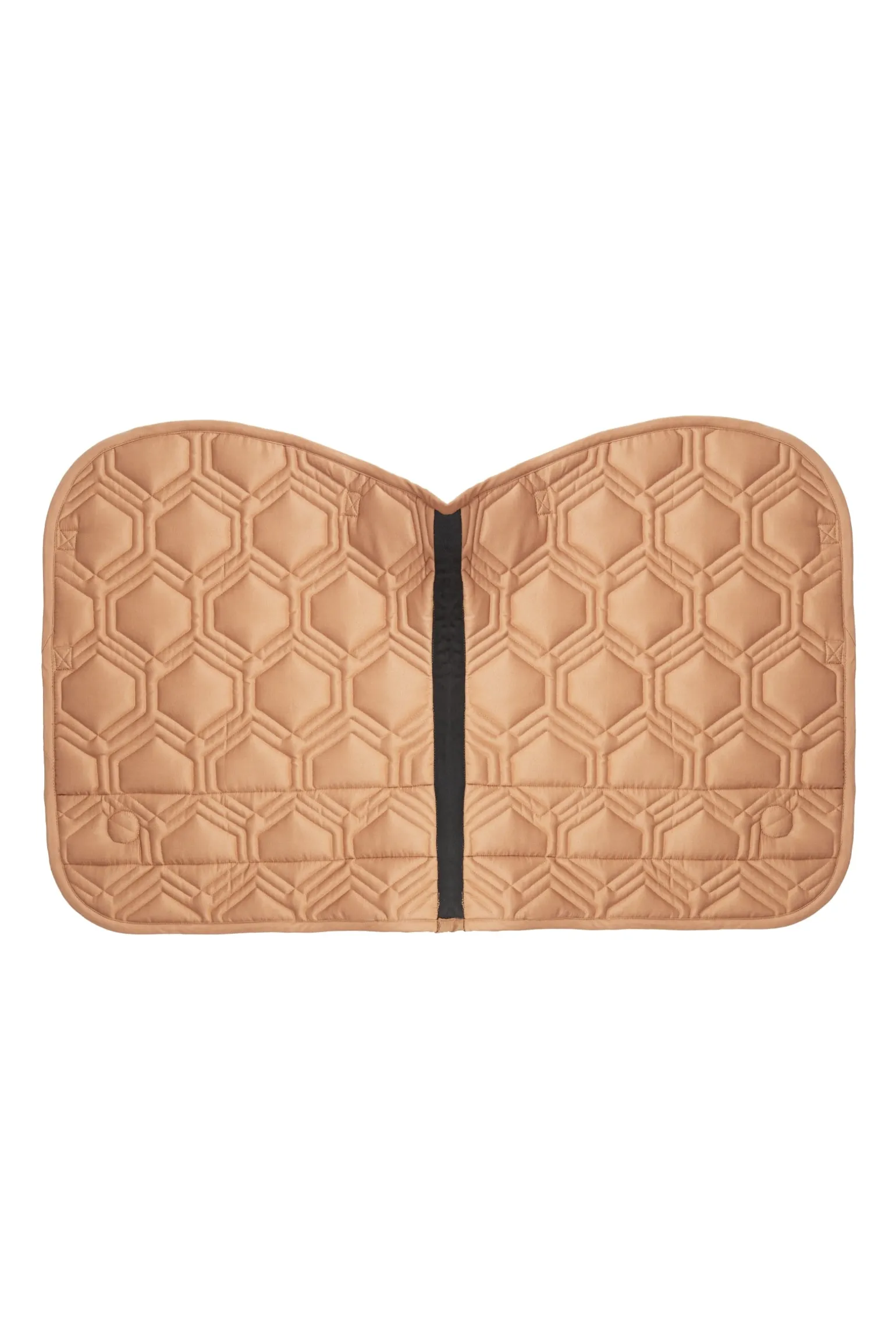 Das sportliche Design dieser Schabracke mit Jacquardtape und Silikonabzeichen sorgt für einen stilvollen Look im Parcours. Die langen Sattelbefestigungsriemen sorgen für einen sicheren und stabilen Sitz, während die verstellbaren Gurtschlaufen eine einfache Anpassung ermöglichen. Die anatomische Form und das sechseckige Steppmuster bieten optimalen Komfort und Unterstützung für den Rücken deines Pferdes. Das feuchtigkeitsableitende Material auf der Innenseite sorgt dafür, dass dein Pferd während des Reitens trocken und komfortabel bleibt.