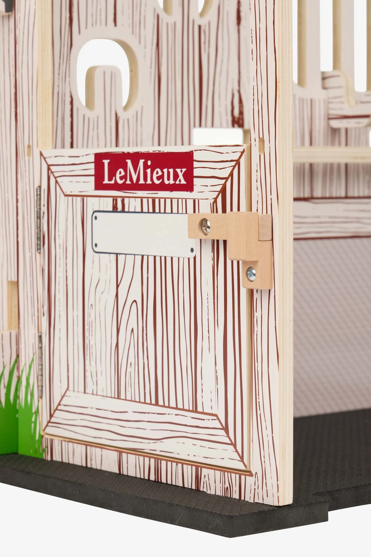 Klassische Spielzeugpferdebox aus Holz, entworfen von Pferdeexpert*innen, mit authentischen, realistischen, aufgedruckten Designdetails. Die perfekte Größe für LeMieux Spielzeugponys und Stallzubehör, ideal für Kinder, die authentische Spielszenarien nachspielen wollen.