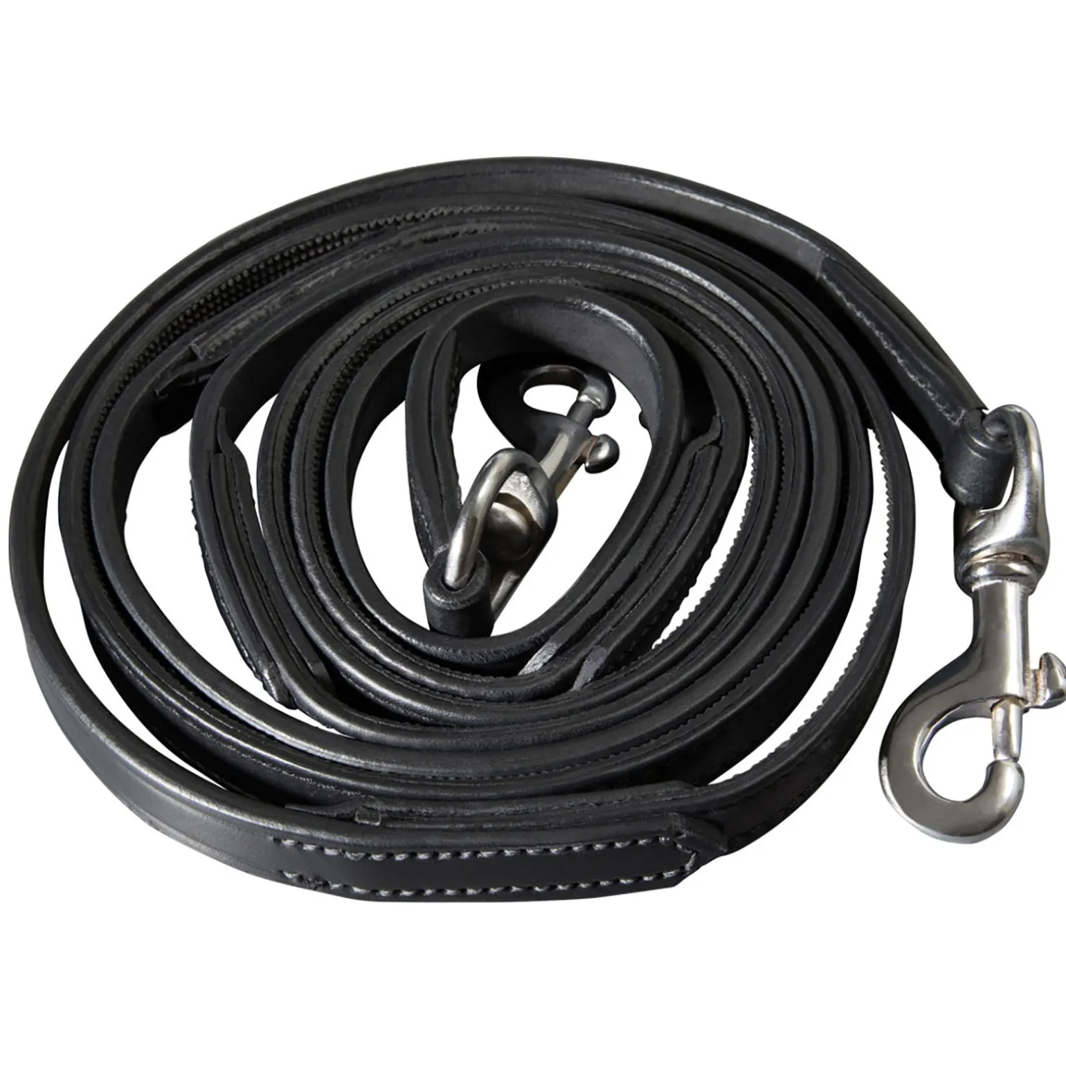 Schöne Zügel mit Gummi am einer Seite und Leder auf der anderen. Gibt einen guten Kontakt zum Pferd und einen starken Griff an den Zügel.