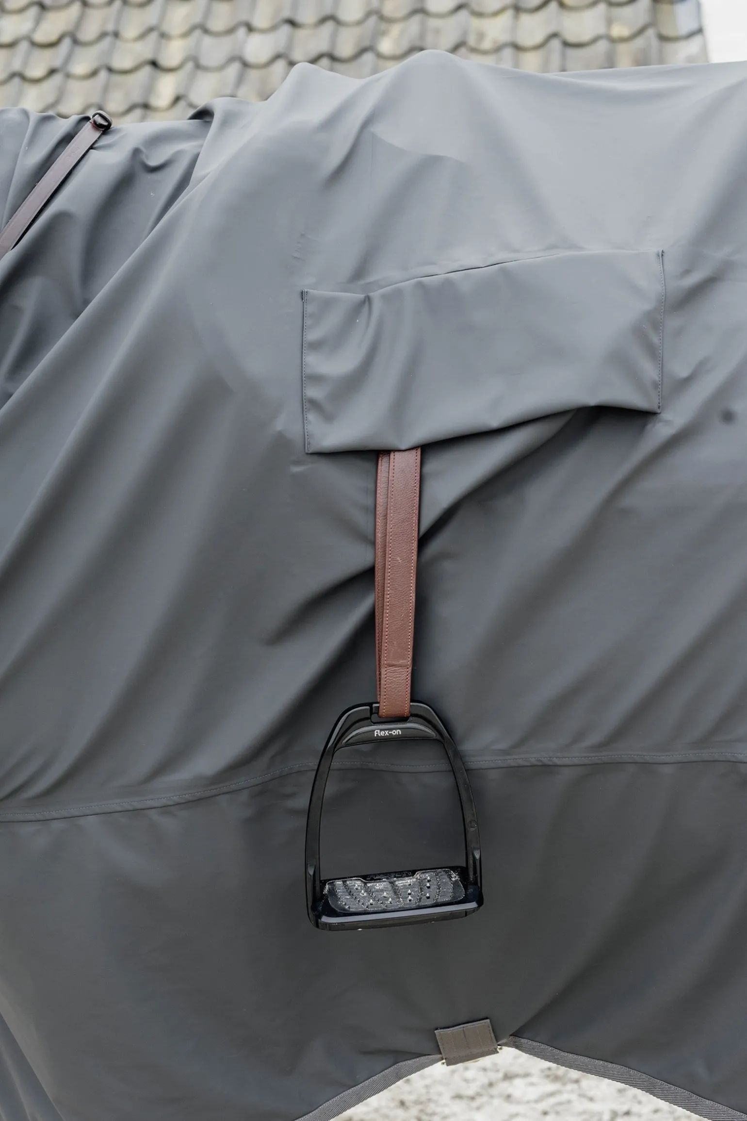 Diese Regendecke für Pferde ist ein Muss für jeden Turnierreiter, um sein Pferd und sein wertvolles Sattelzeug gegen starken Regen zu schützen.