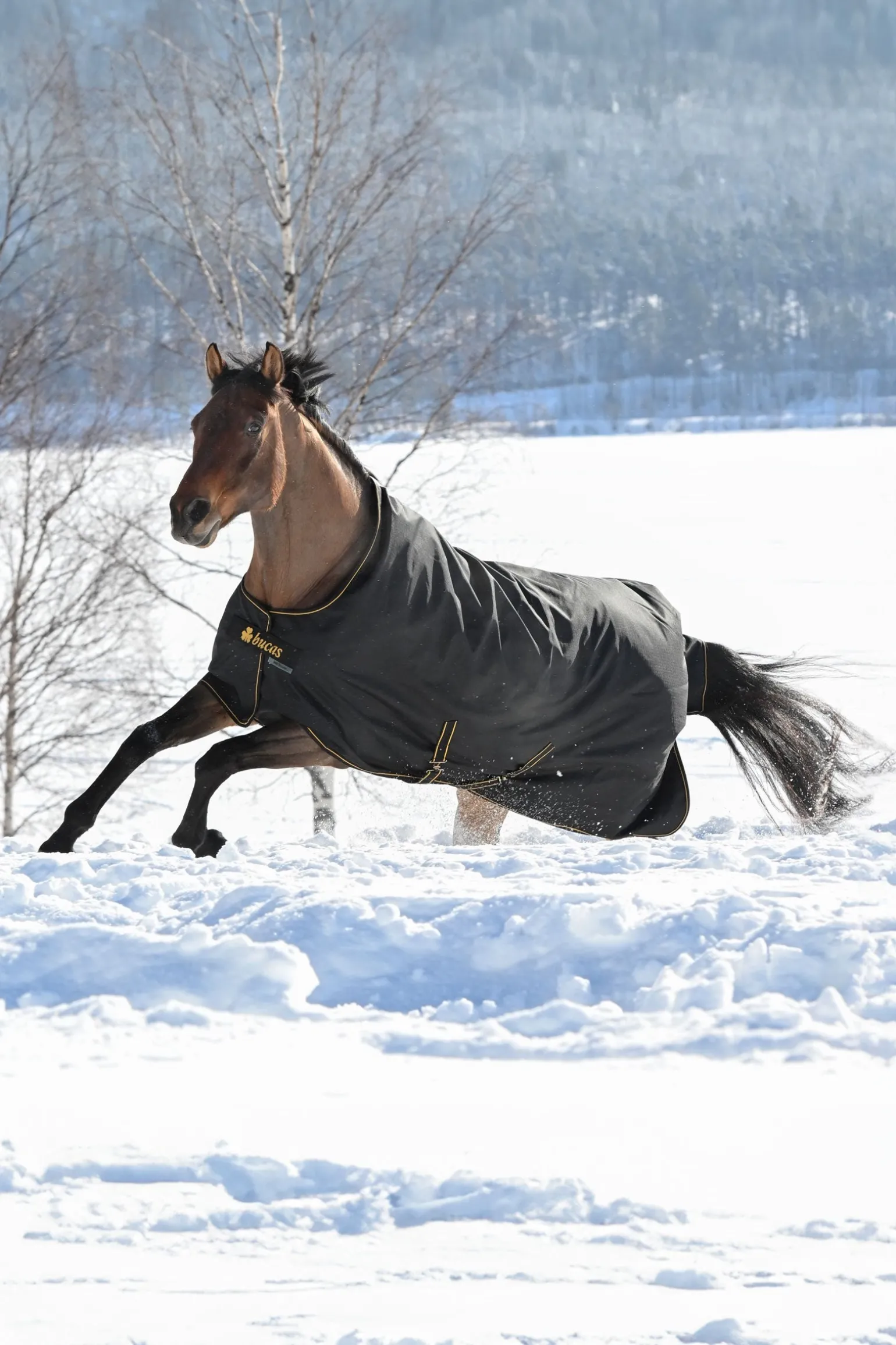 Die Irish Turnout Weidedecke ist eine leistungsstarke Decke, die ein hervorragendes Preis-Leistungs-Verhältnis und große Flexibilität bietet, um den Bedürfnissen deines Pferdes gerecht zu werden. Die Irish-Kollektion verfügt über ein seidenweiches, atmungsaktives Dermo-care-Futter, das dazu beiträgt, die Haut und das Fell deines Pferdes gesund und geschmeidig zu halten. Das robuste 1200D Ripstop-Außenmaterial sorgt dafür, dass dein Pferd gut vor dem Wetter geschützt ist.