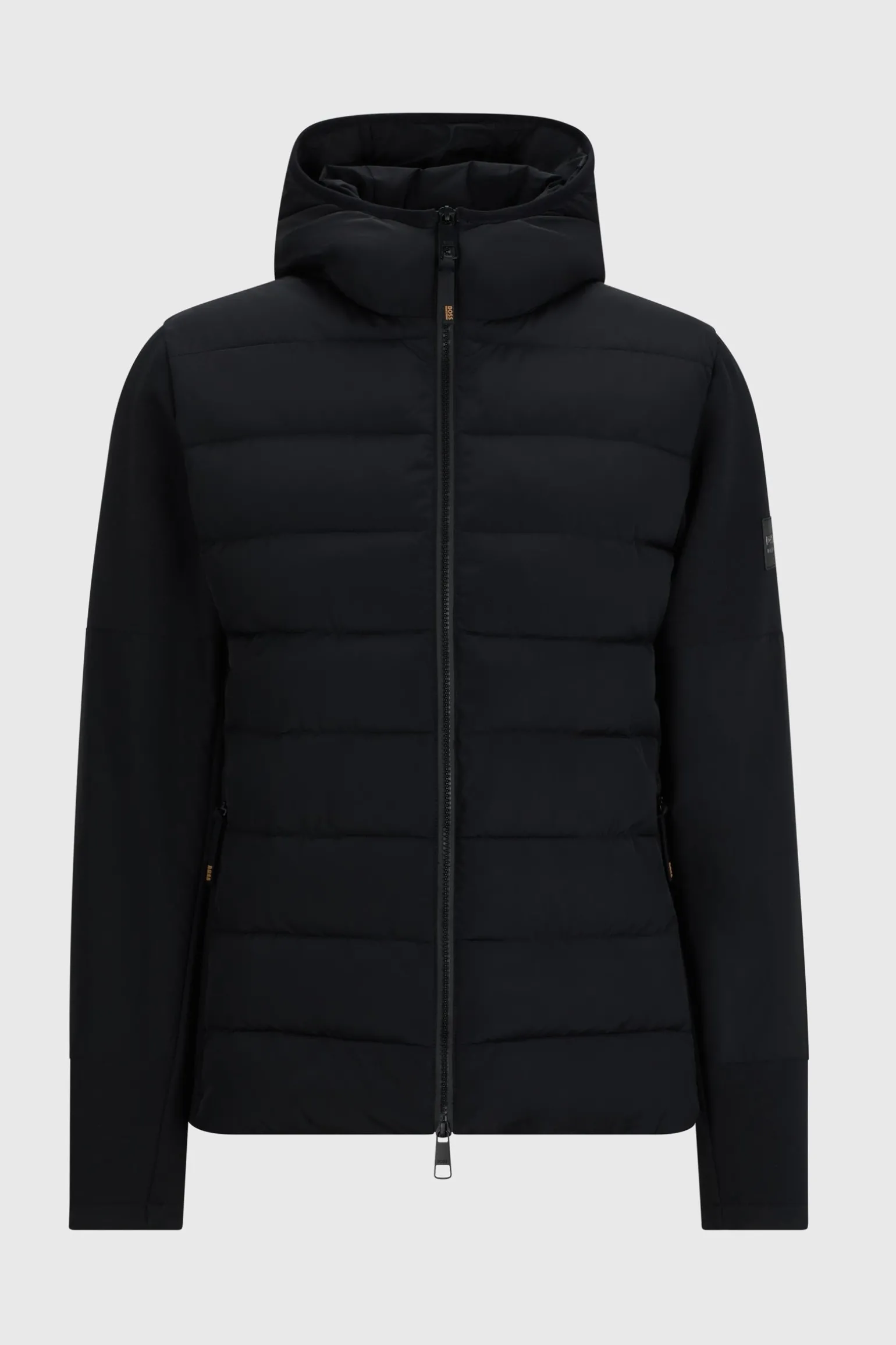 Leichter 2nd Layer Mix aus Puffer- und Softshelljacke.