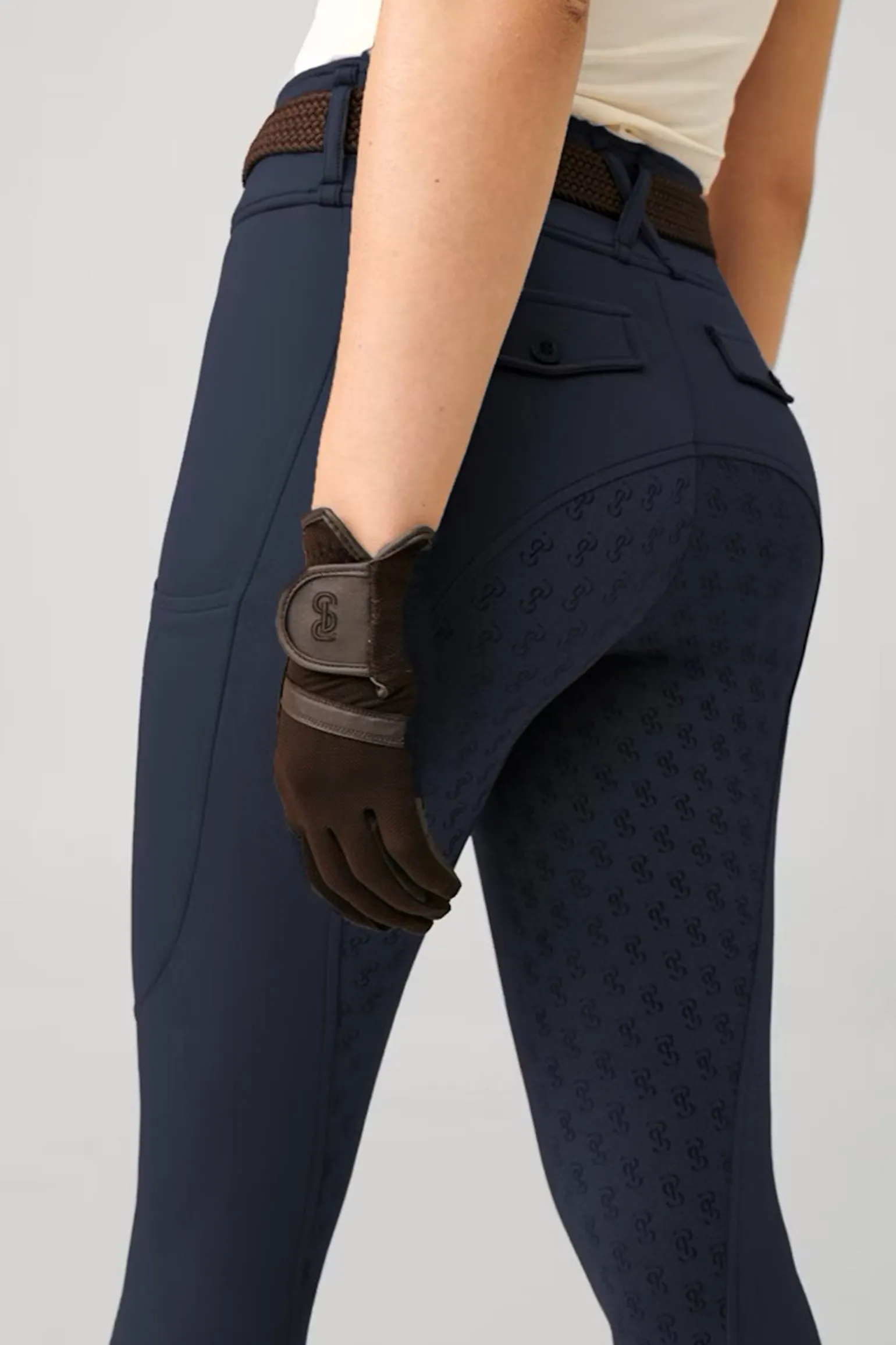 Genieße außergewöhnlichen Komfort und Stil mit dieser Reitleggings, gefertigt aus atmungsaktivem Gewebe mit 4-Wege-Stretch für aktiven Komfort. Entwickelt für perfekte Passform mit Formbeständigkeit und leichter Kompression. An jedem Oberschenkel befindet sich eine praktische Handytasche, inklusive eines geprägten PS-Monogramms auf der linken Tasche. Der breite Shell-Stoff-Bund mit überkreuzten Gürtelschlaufen hinten verleiht ein gepflegtes Aussehen. Zwei Zier-Gesäßtaschen mit Klappen und passenden 4-Loch-Knöpfen ergänzen das Design, während der glänzende Silikon-PS-Monogramm-Grip sicheren Halt gewährleistet. Diese Leggings bieten hohen Komfort und ein weiches Gefühl bei jedem Ritt.
