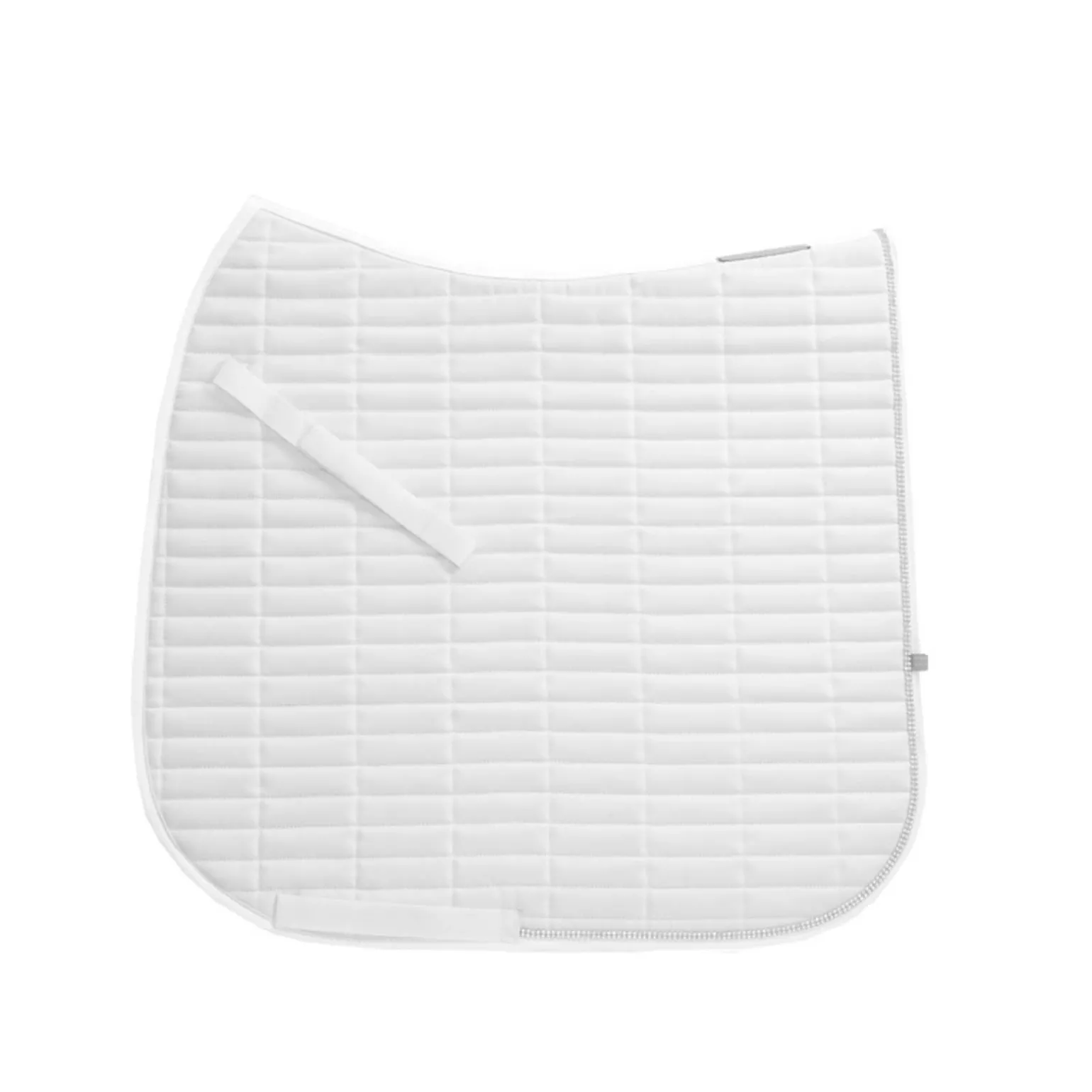 Strasssteine und ein Einfass in Satin verzieren den Rand der gesteppten Schabracke. Die feste Füllung und der geschwungende Rückenbereich bieten einen optimalen Sitz. Schweißaufsaugendes Untermaterial.